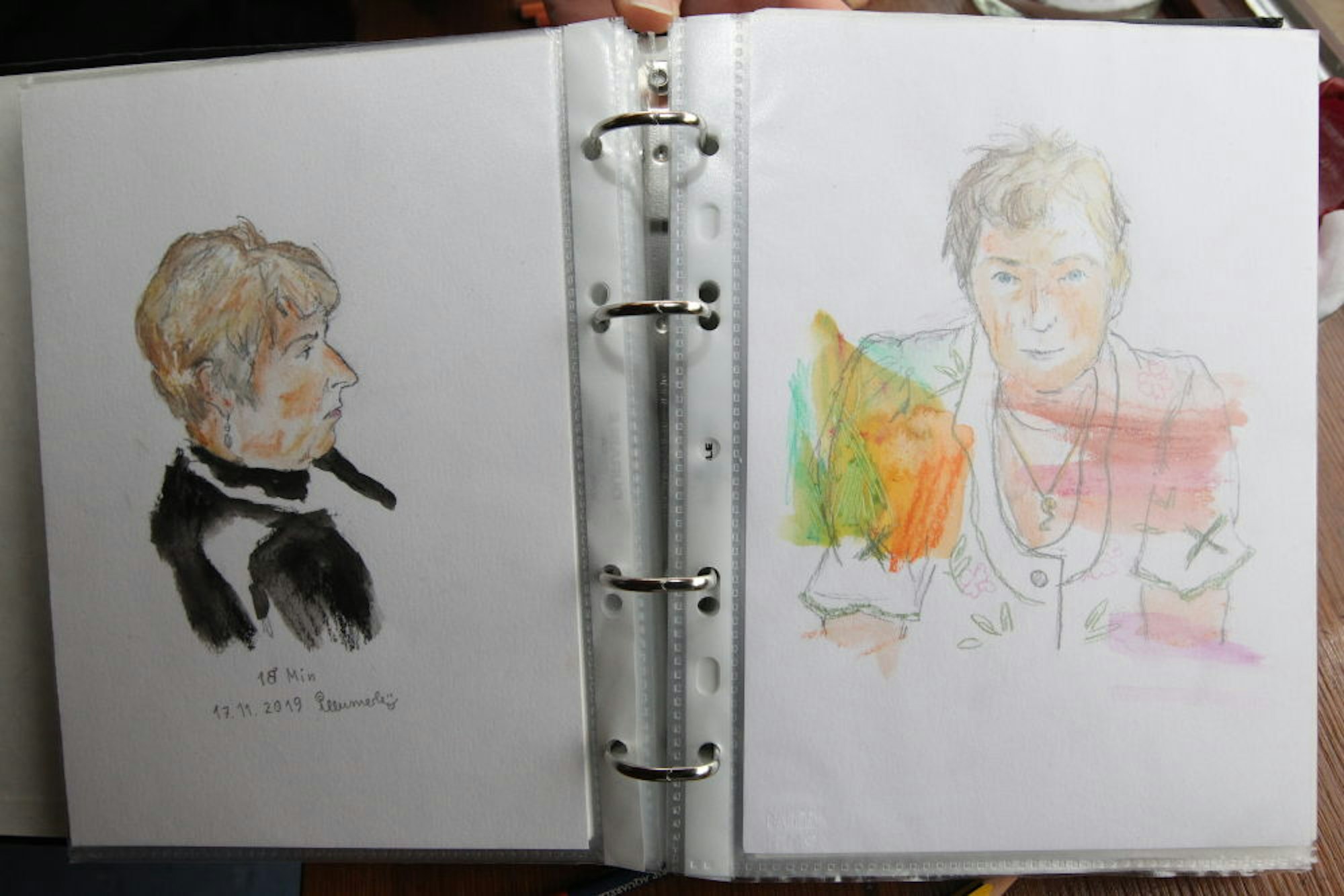 - Auf vielen Veranstaltungen im Kreis, zeichnet sie Schnell-Porträts - und verdient damit ihr Geld.
