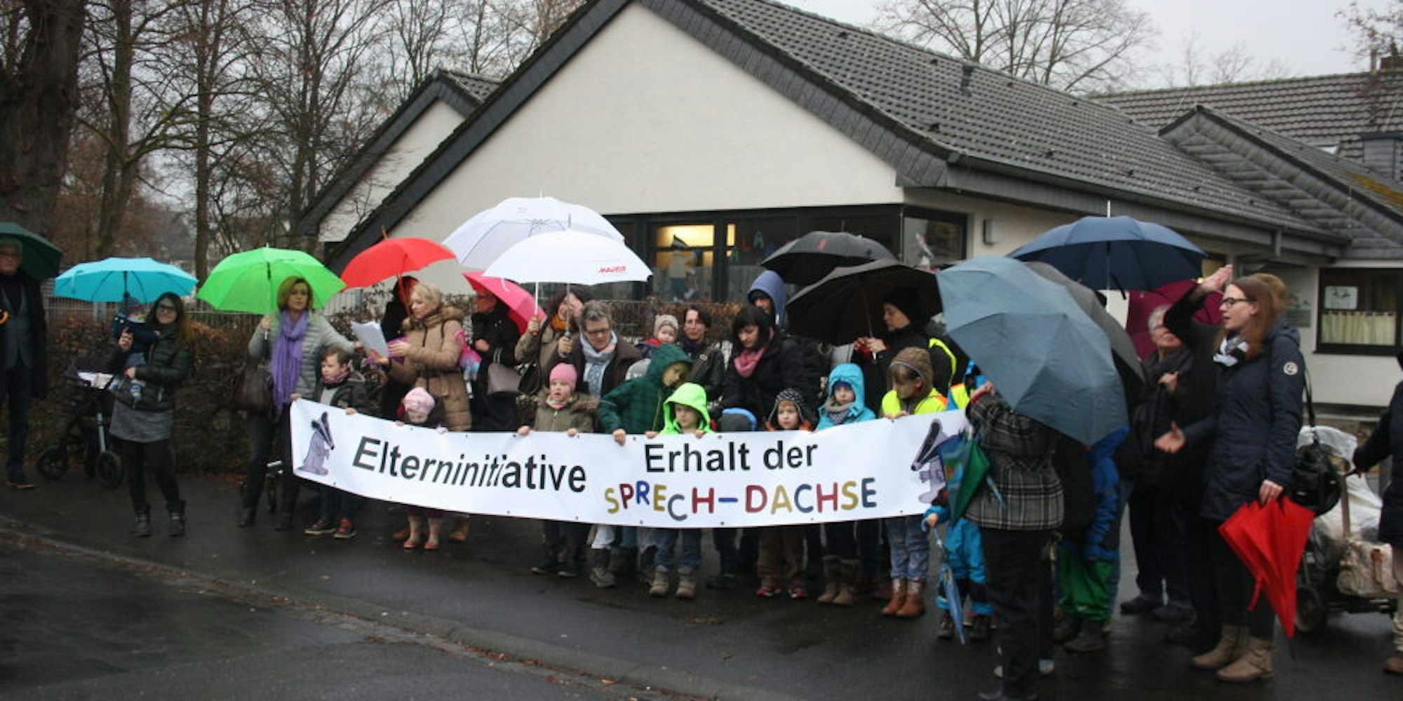 Unter Regenschirmen protestierten damals Väter und Mütter, die sich zur „Elterninitiative zum Erhalt der Sprechdachse“ zusammengeschlossen hatten, mit ihrem Nachwuchs vor dem Kindergarten an der Arndtstraße. „Leider vergeblich“, stellt Sabine Nelles von der Initiative heute fest. Es gab nur einen Aufschub.