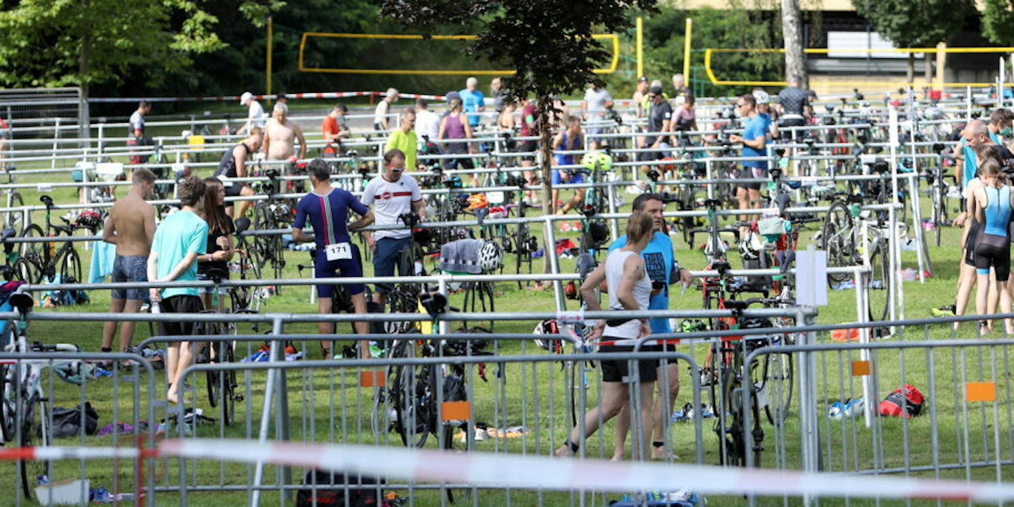 In der Wechselzone vom Schwimmen zum Radfahren tummelten sich die Sportler bei bestem Wetter.