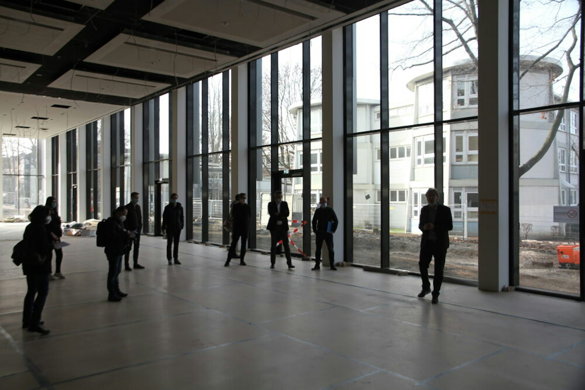 Siegburg – „Wir kommen geschmeidig durch die Baustelle“, erläutert Andre Kuchheuser gelassen, als er die Besucher durch die Baustelle für das neue Rhein-Sieg-Forum lotst. „Wenn wir wollten, könnten wir in drei bis vier Wochen eröffnen.“ Tatsächlich hatte der Vorstand der Stadtbetriebe schon einmal den 6. März ins Auge gefasst, um eine Eröffnungswoche mit vielen Veranstaltungen zu beginnen. Doch Corona ließ auch diesem Termin platzen, und so soll jetzt ab dem 9. Mai gefeiert werden. Man habe sogar ein wenig „den Dampf“ aus den Arbeiten nehmen können.