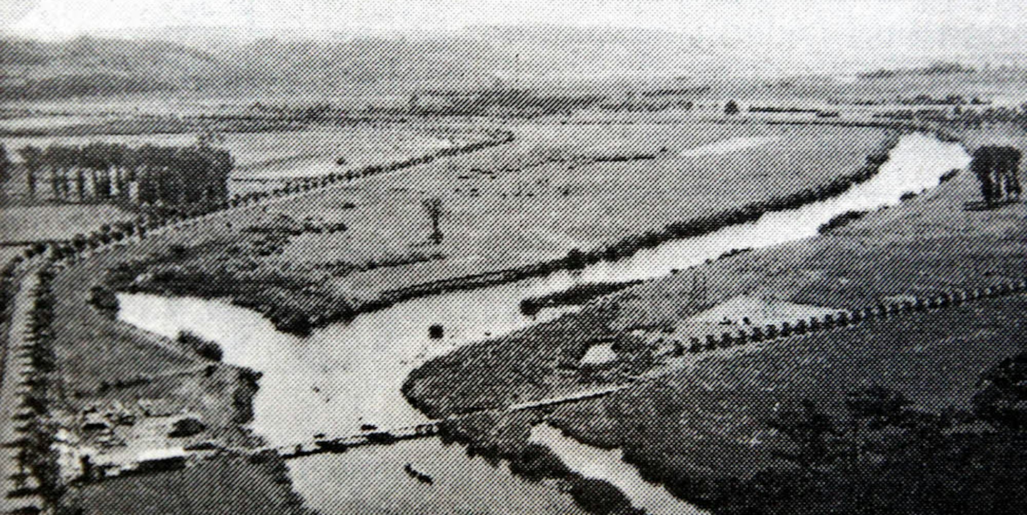 Um 1936 entstand dieses Bild von den Arbeiten an der Autobahnbrücke über Sieg und Wahnbachtalstraße in Siegburg.