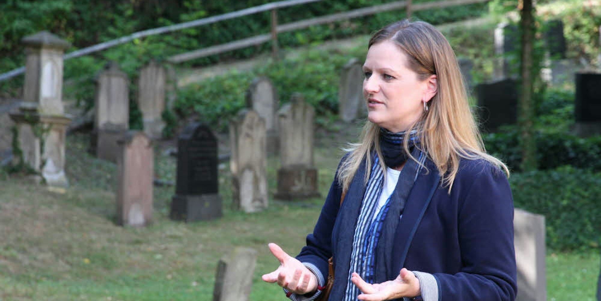 Kreisarchivarin Dr. Claudia Arndt kennt viele der Geschichten hinter den alten Grabsteinen auf dem jüdischen Friedhof Siegburgs. Und sie hält die Erinnerung an die Siegburger mosaischen Glaubens mit Besuchen der Ruhestätte lebendig. Rund 50 Besuchern gab sie Einblick in die jüdische Bestattungs- und Trauerkultur.