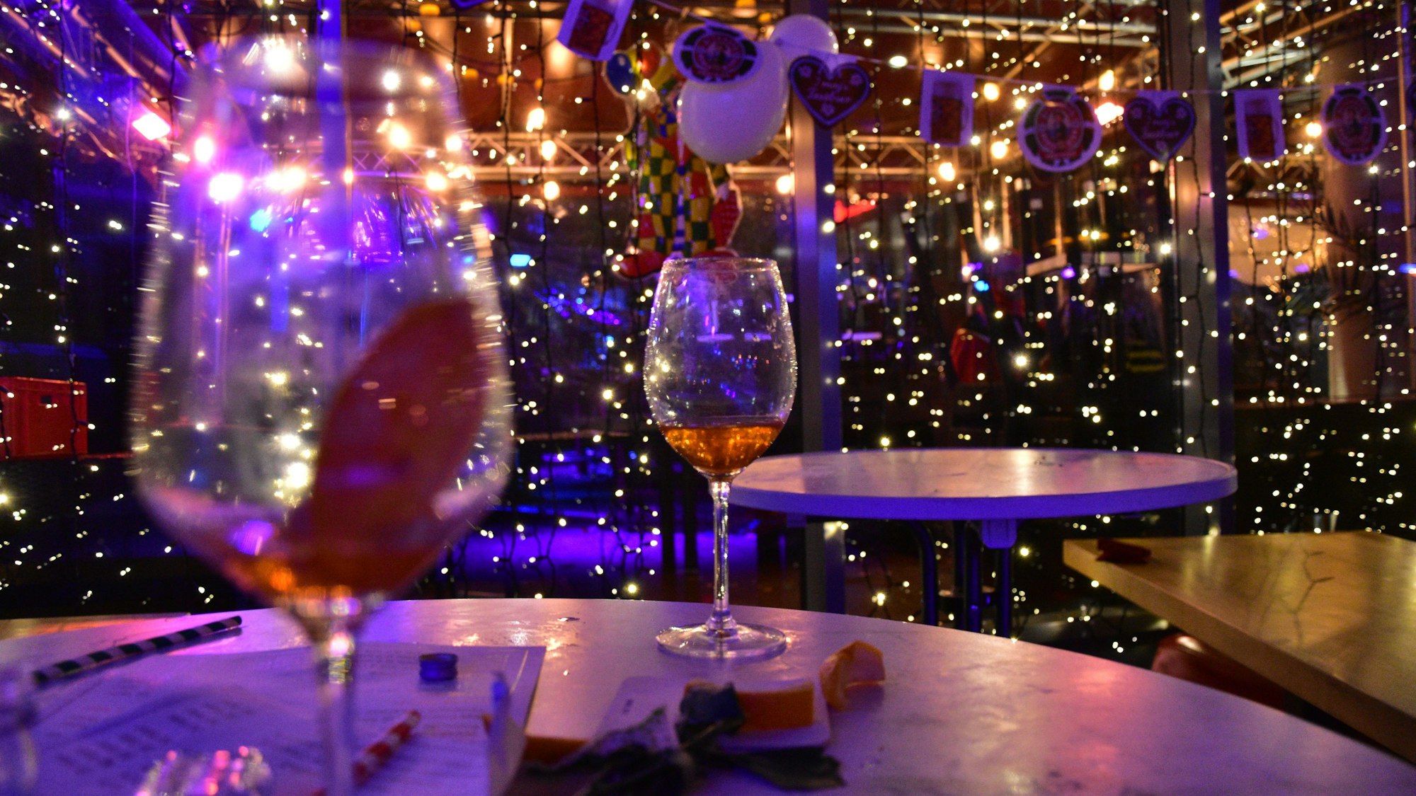 Leere Gläser nach der großen Weiberfastnachts-Party im Siegburger Sion im S-Carré.