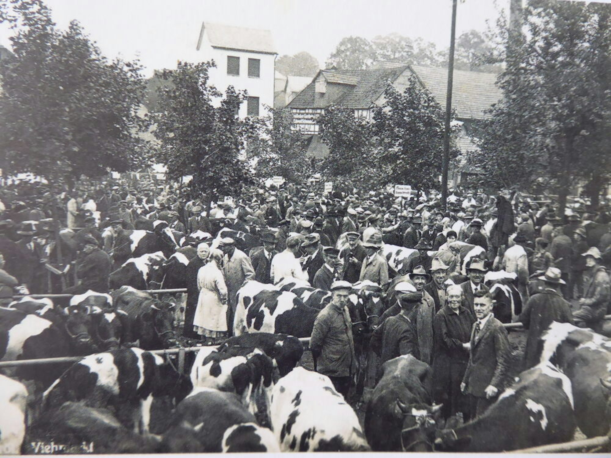 Um das Jahr 1930 entstand dieses Bild vom Viehmarkt im Oberbergischen Waldbröl, viele Juden trieben seinerzeit Viehhandel auch hier in der Region.