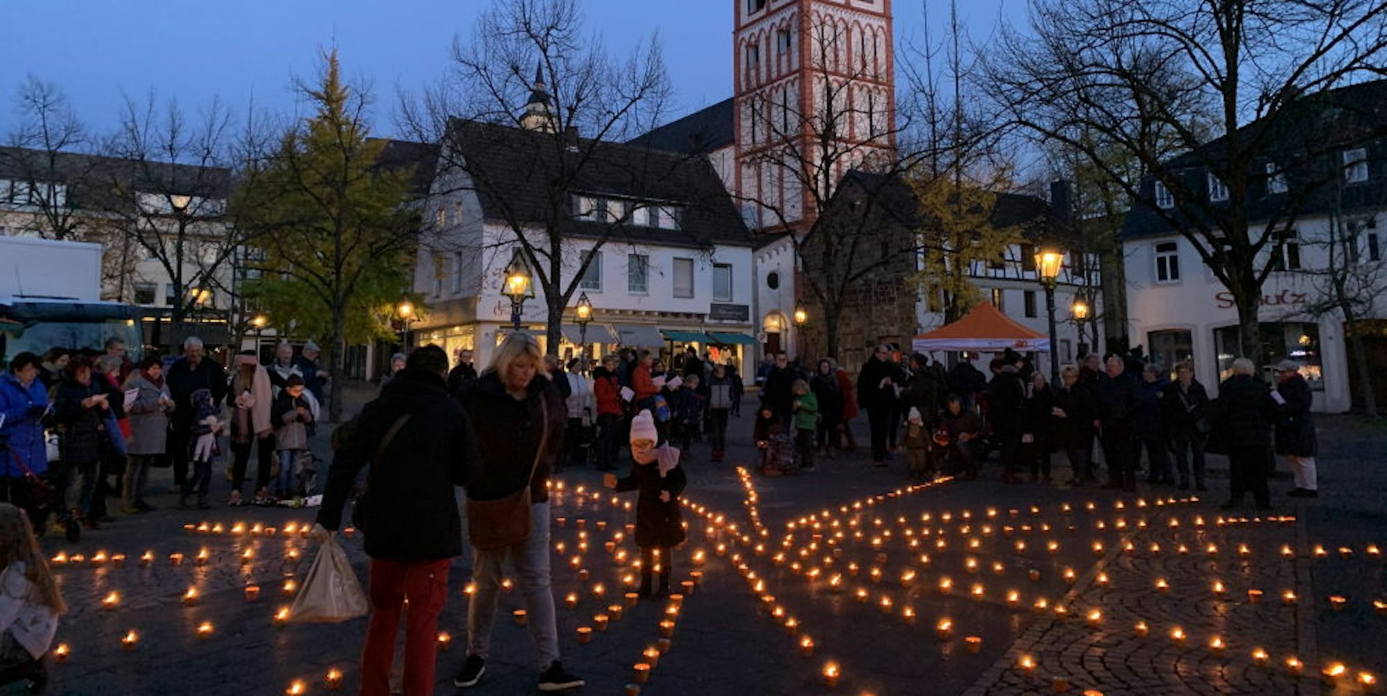 Um Aufmerksamkeit und Hilfe für Menschen in schwierigen Lebenslagen zu erwecken, startet die Caritas jedes Jahr eine Solidaritätsaktion. Diesmal beteiligte sich das Familienzentrum der katholischen Kirchengemeinde Sankt Servatius mit dem der Aktion „Eine Million Sterne“ auf dem Siegburger Marktplatz. Alle Bürgerinnen und Bürger waren eingeladen, ein Windlicht mitzubringen. Die Lichter wurden in Form eines Sternes auf dem Platz angeordnet. Wer beim Einkaufsbummel aufmerksam wurde und spontan mitmachen wollte, erhielt von den Organisatoren eine Kerze.