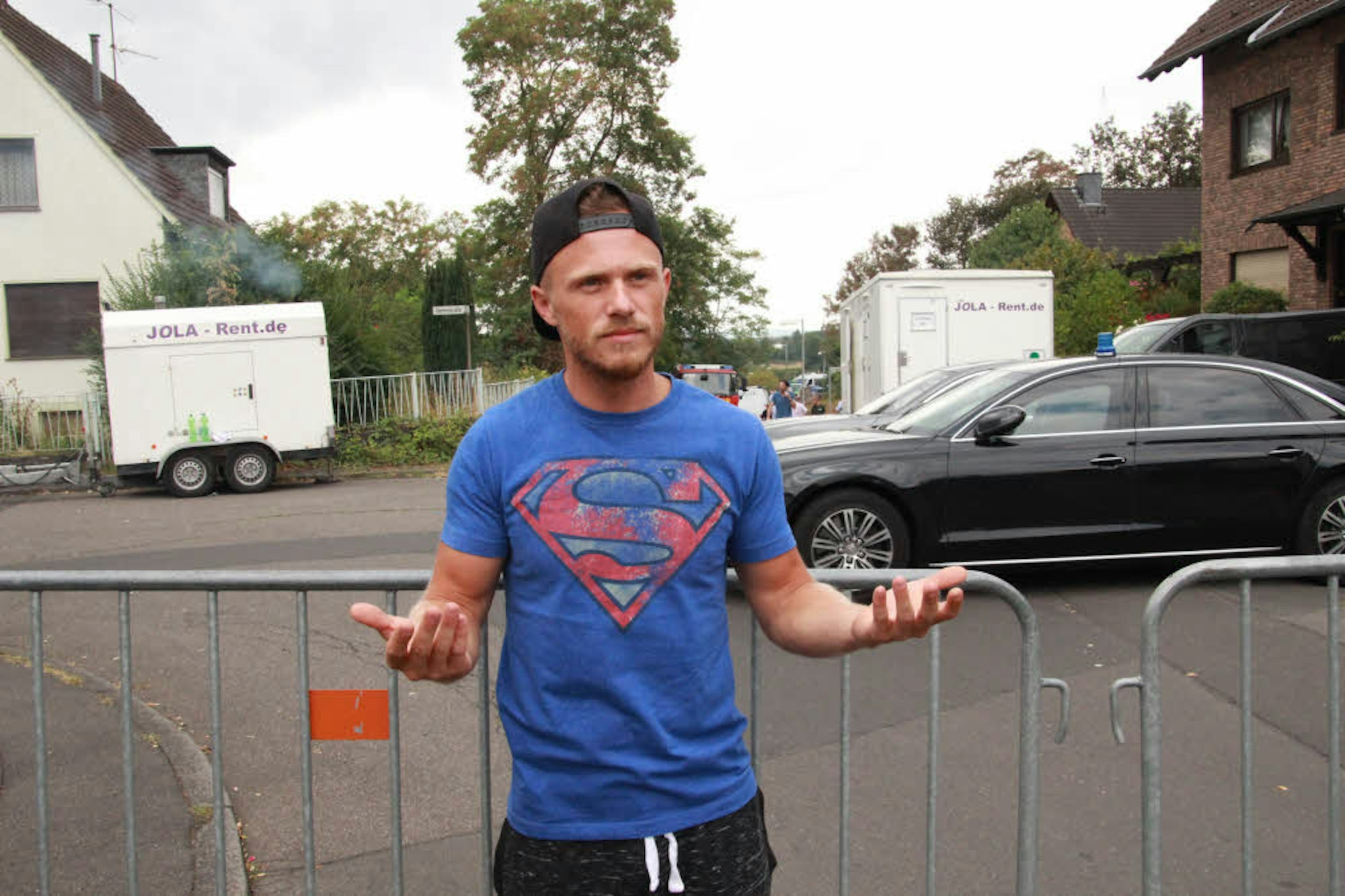Bergen, blaues Superman-Shirt, Baseballkappe, steht an einem Absperrgitter. Ganz ruhig wirkt er. Und sagt: „Ich bin obdachlos. Die Nacht habe ich bei einem Freund verbracht, aber wie es weitergeht, das weiß ich nicht.“