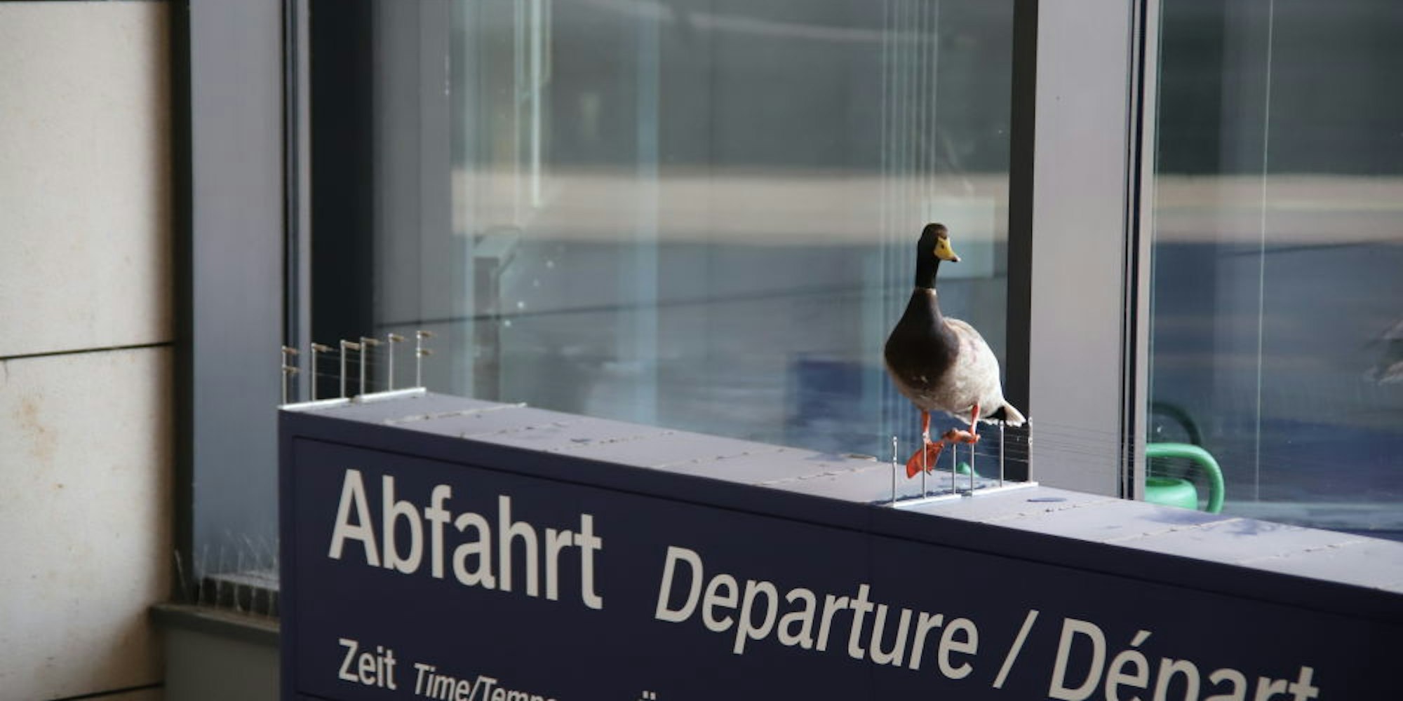 Auf die Anzeigetafel verirrt hatte sich die Ente. Wo Abfahrt draufsteht, fiel ihr der Abflug schwer.