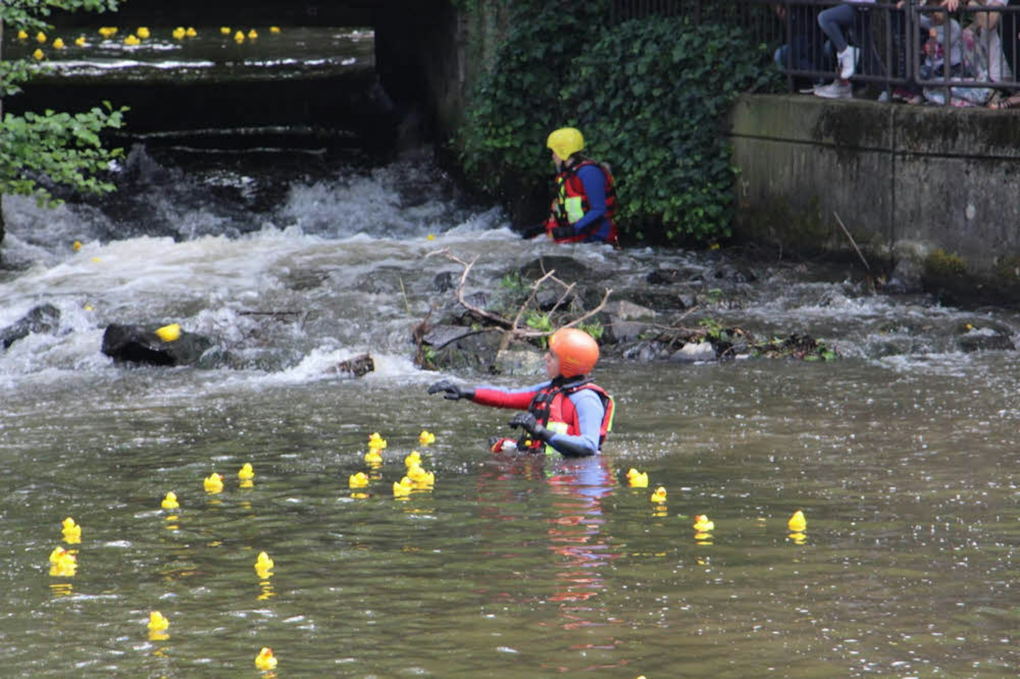 Professionelle Hilfe von den Leuten der DLRG gab es für Gummi-Entchen im Wasser, wenn sie nicht mehr voran kamen.