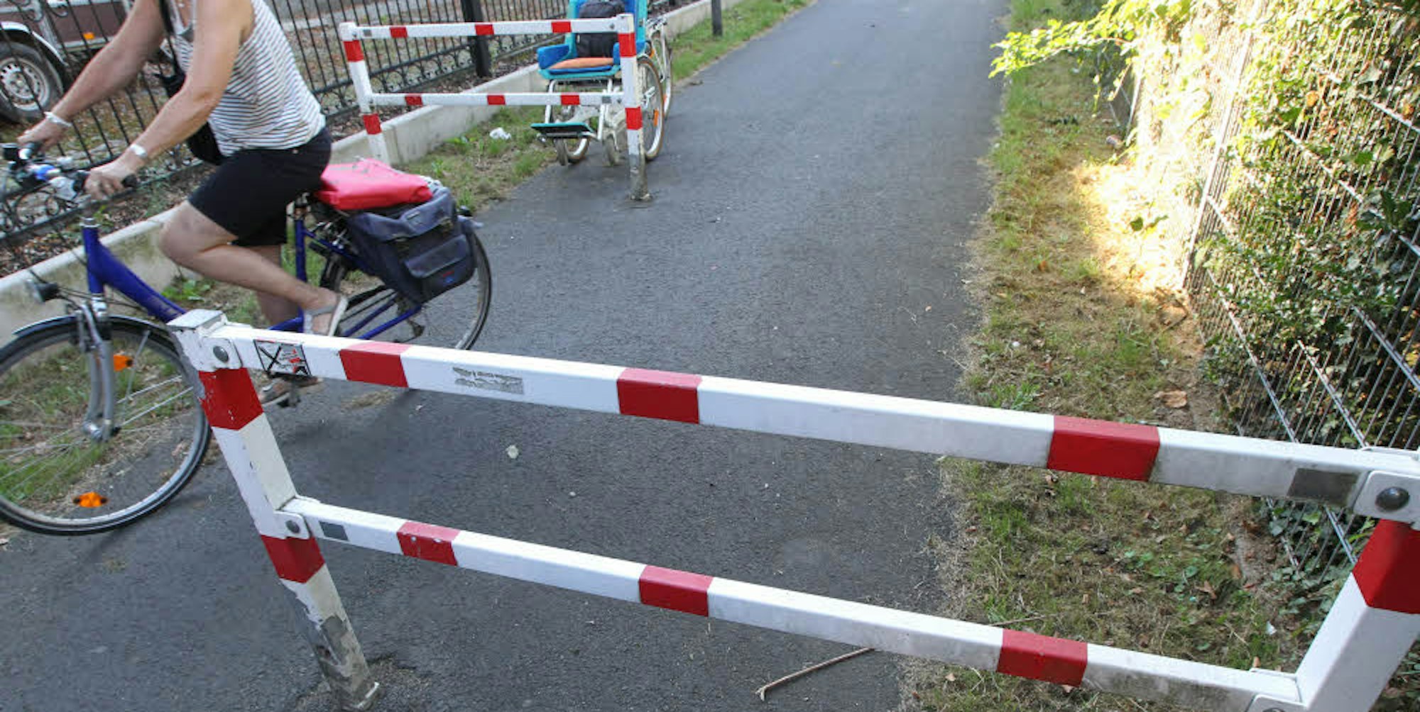 Die Umlaufsperren am Radweg auf der alten Bahntrasse sind nicht für alle Radler ein Problem.