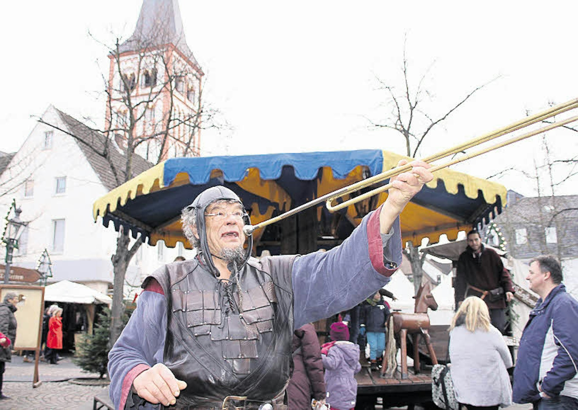 Auf dem mittelalterlichen Weihnachtsmarkt in Siegburg ist der Büttel Molinarius fester Bestandteil.