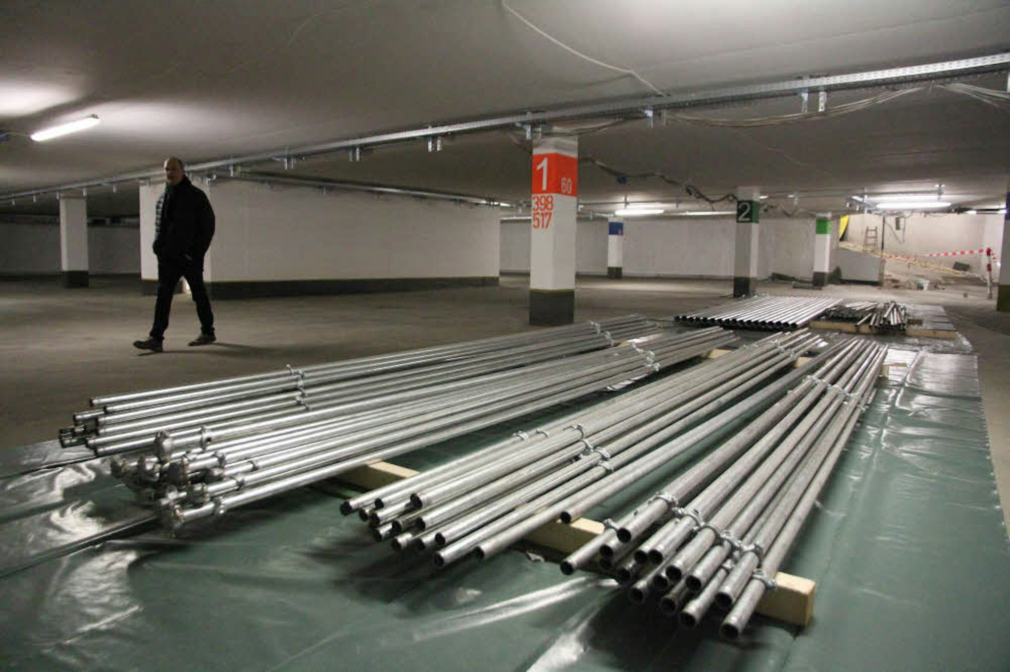 Im weitgehend fertigen ersten Abschnitt liegen Rohre für die neue Sprinkler-Anlage bereit.