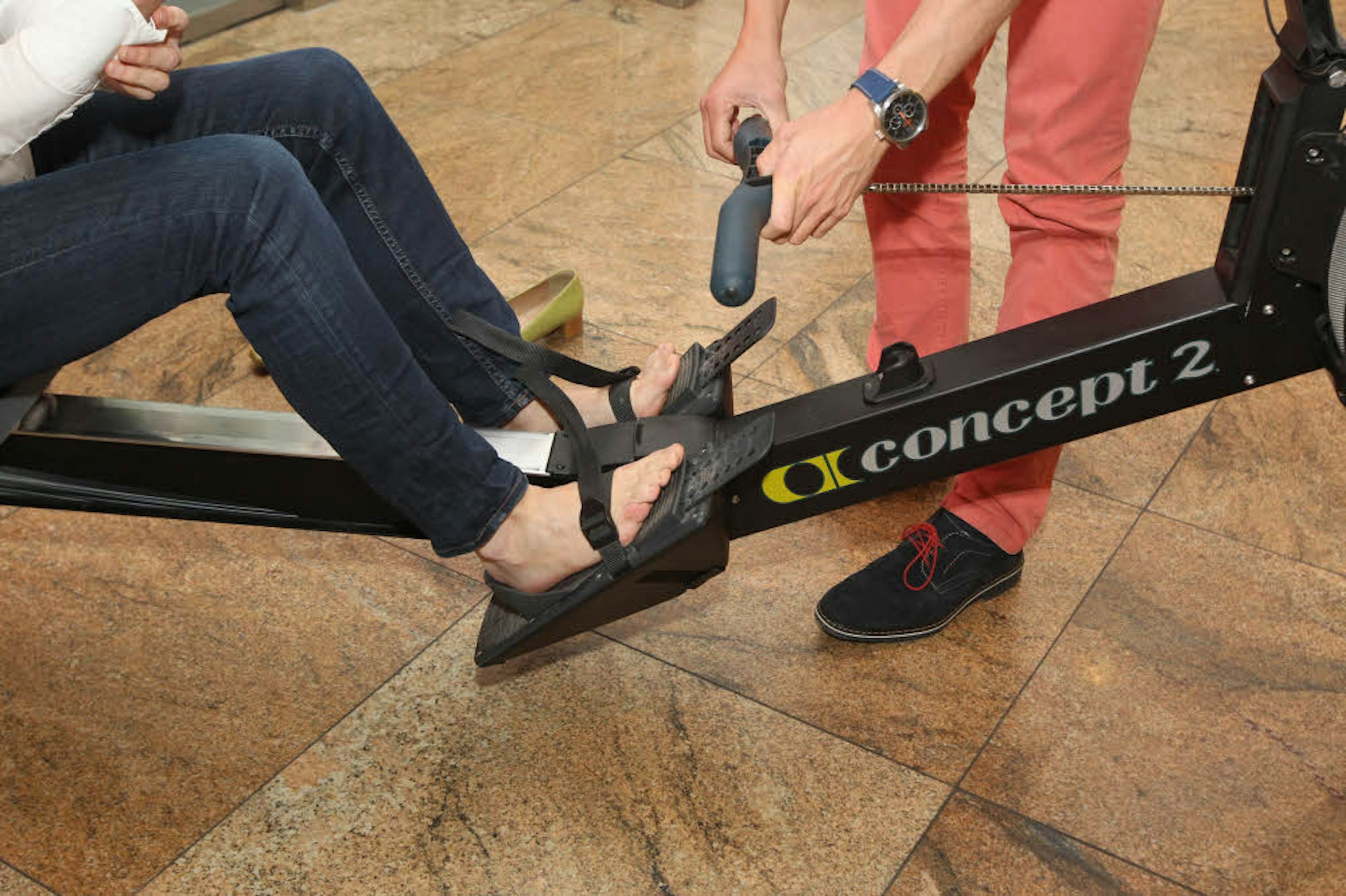 - Athleten messen sich auf dem Ruder-Ergometer