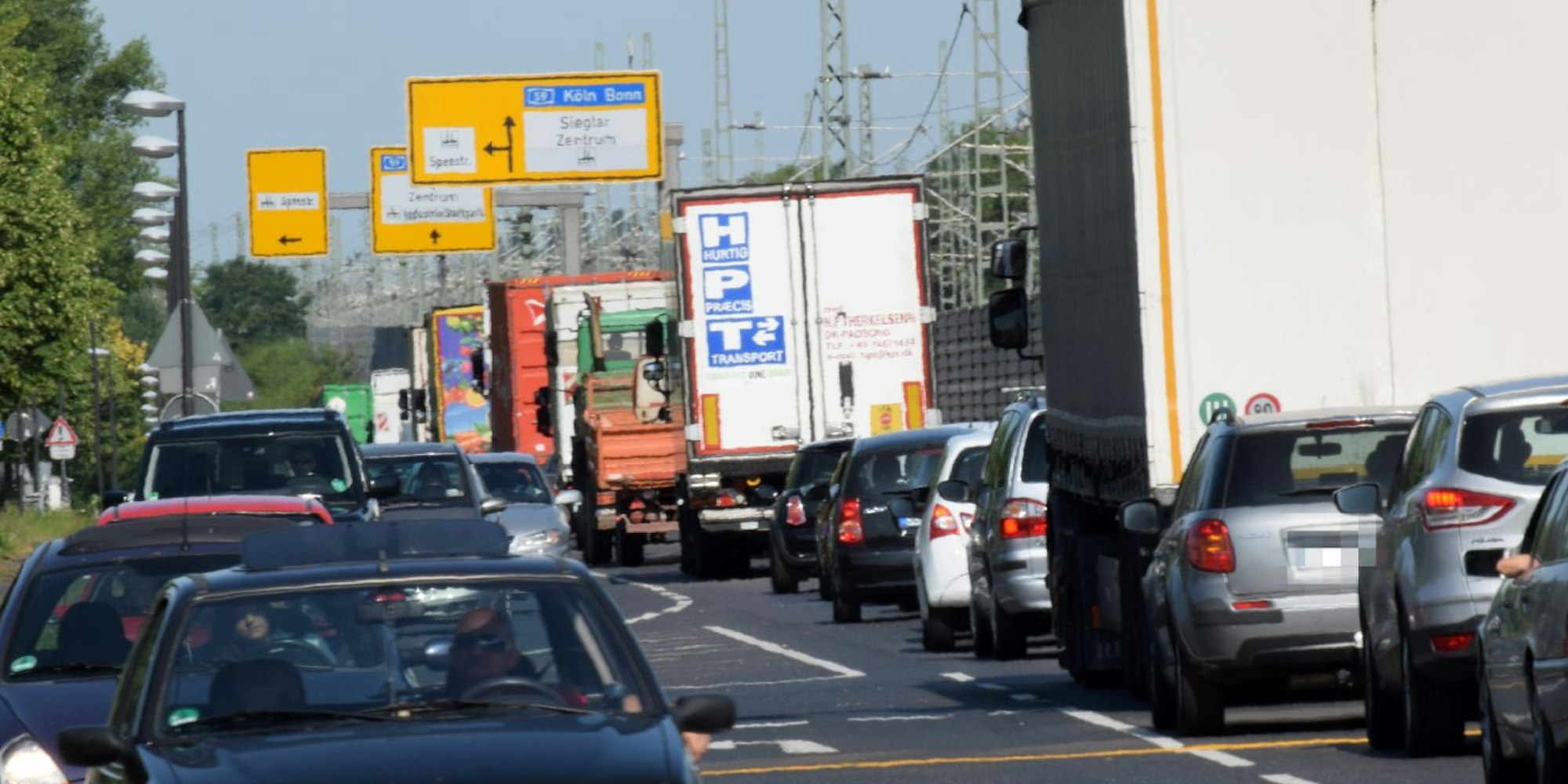 „Nichts geht mehr“, hieß es schon am frühen Morgen zum Beispiel auf der Bonner Straße (B 56), wo sich die Kolonne zeitweilig von Siegburg bis Pützchen erstreckte. Ein ähnliches Bild zeigte die amtliche Umleitung, die über B 56 und Willy-Brandt-Ring (L 332) zur Autobahn 59 führt: Stop and go war hier angesagt; Lastwagen und Pkw wälzten sich langsam in Richtung Troisdorf. Keine Lösung war auch die Idee, schon eine Abfahrt früher die Siegburger Nordumgehung zu verlassen und durch die Troisdorfer City zu fahren: der „Schleichweg“ machte seinem Namen alle Ehre.