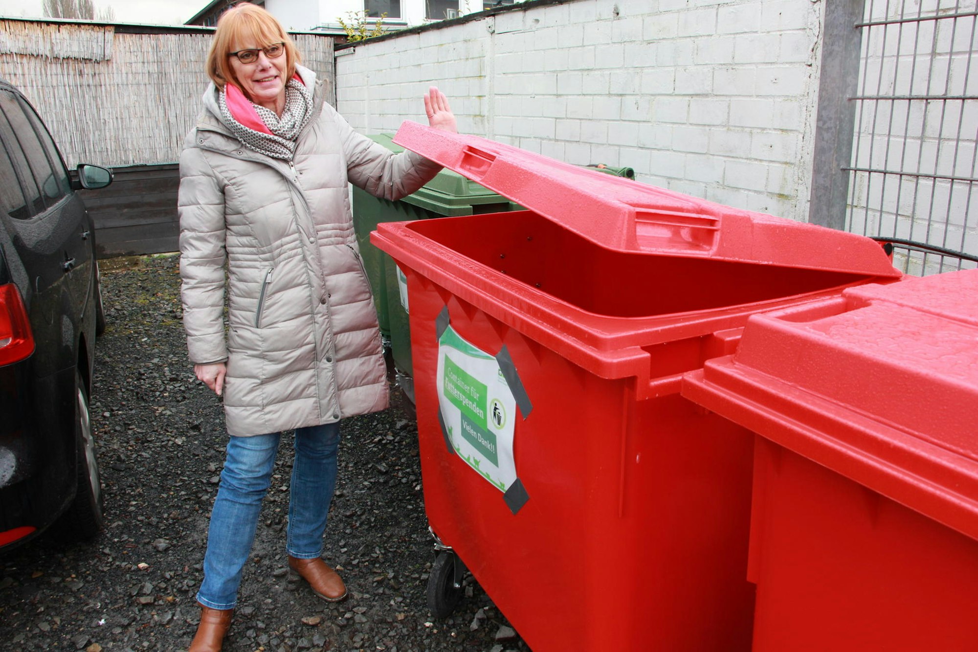 Futterspenden bleiben erlaubt: Helga Berben, Vorstandsvorsitzende des Tierschutzvereins, an den Spendencontainern.