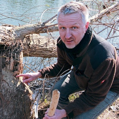 Komplett geschält wurde dieser Stamm. Für den Biologen ist die Lage eindeutig: Hier ist der Biber am Werk.