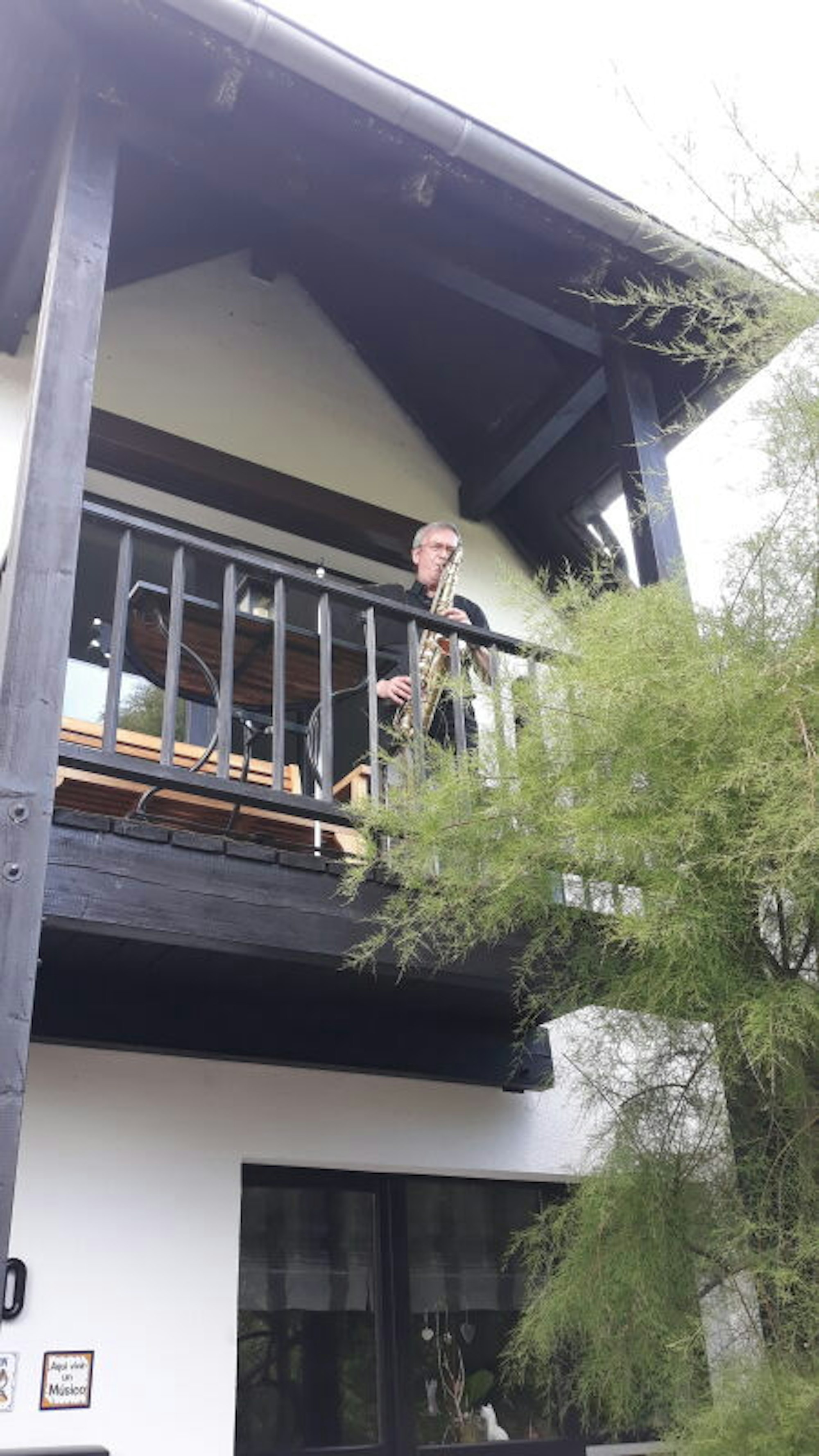 Von der Straße aus lauschen Albrecht Pohls Nachbarn seinem Saxofonspiel.