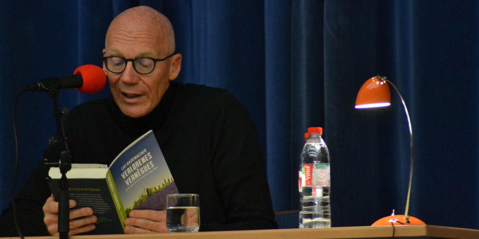 Wie von seinen vielen Fans geschätzt, nahm sich Rademacher ausführlich Zeit für die Beschreibung der speziellen Atmosphäre in der Provence, wo längst auch sein Lebensmittelpunkt ist. Nicht weniger kundig waren seine Beschreibungen der raffiniert jagenden Wölfe; ein Thema, das auch den Rhein-Sieg-Kreis beschäftigt. In bester Cliffhanger-Manier deutete er an, dass sich Capitaine Blanc in „Verlorenes Vernégues“ (Dumont Verlag) bald nicht nur mit vierbeinigen Opfern beschäftigen muss – ein Szenario, für das Gitarrist Pascal Pohlscheid den musikalischen Rahmen lieferte.
