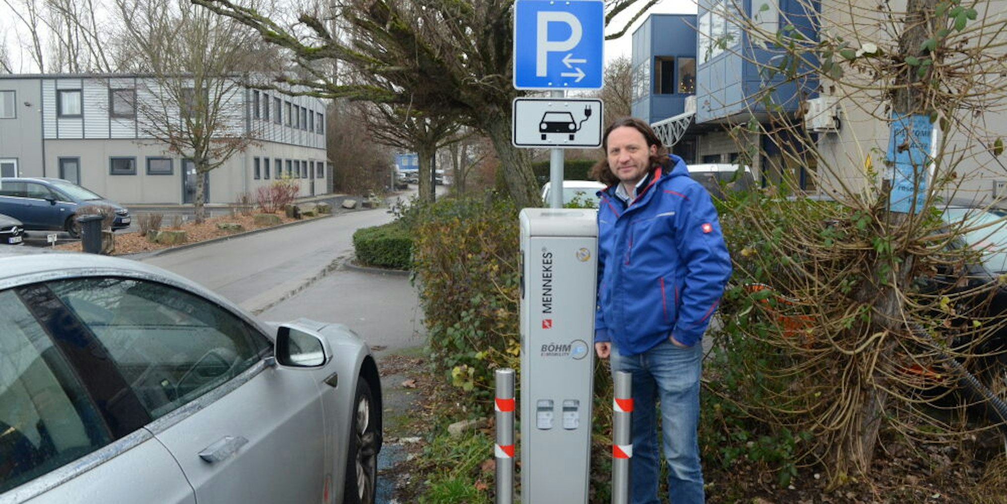 Firmenchef Martin Böhm installiert Ladestationen für Elektroautos in ganz Deutschland.