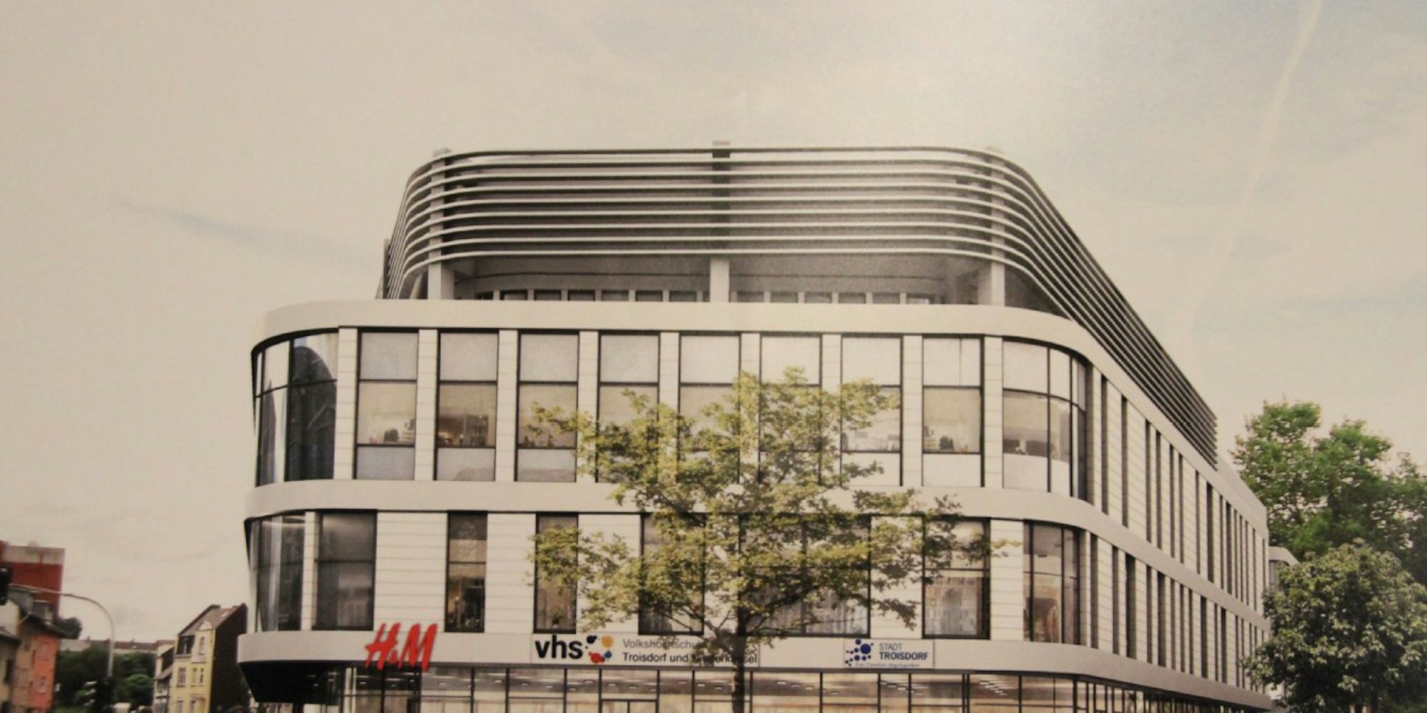 Entwurf für die neue Fassade des Forums an der Kölner Straße in Troisdorf
