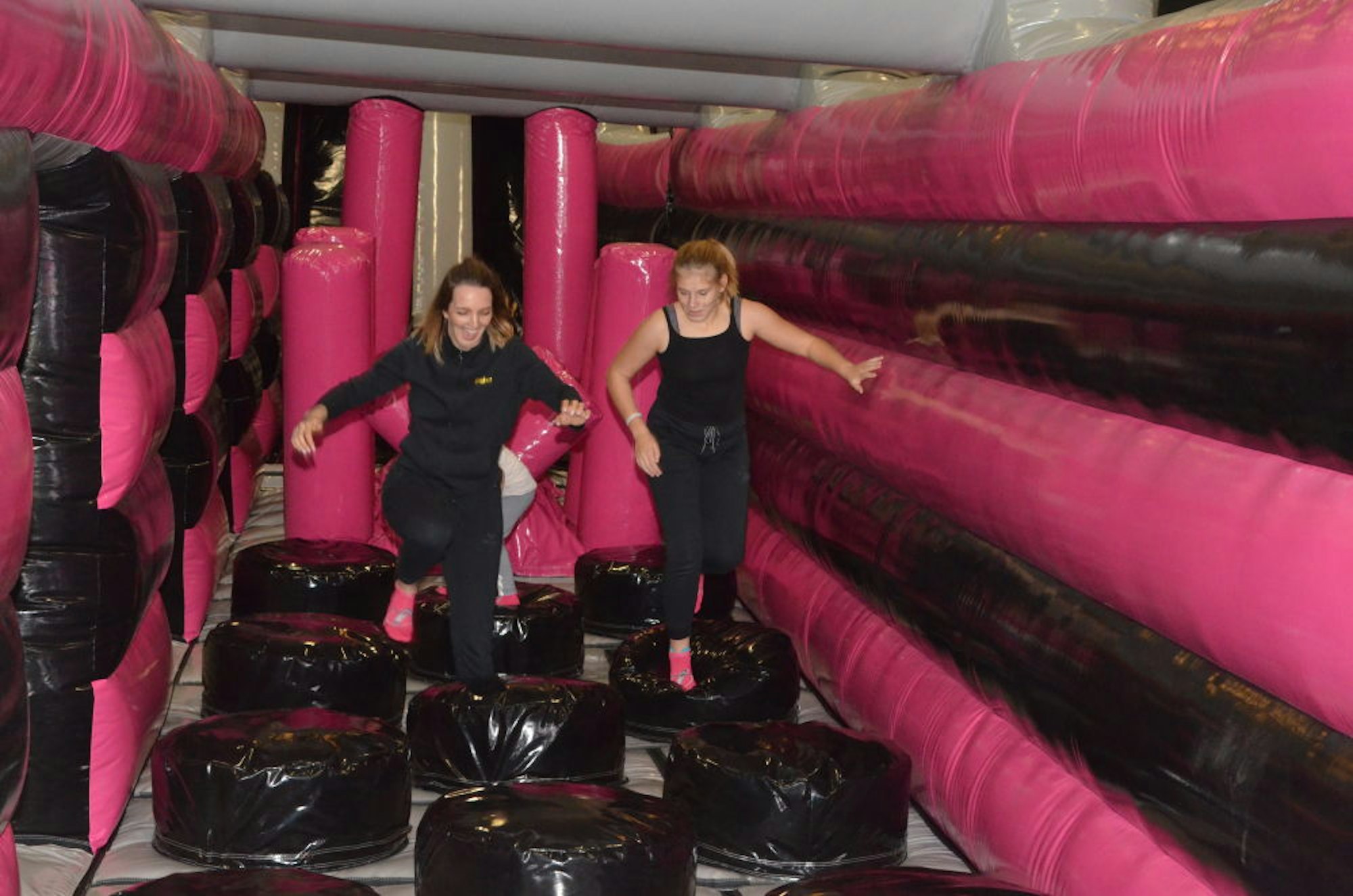 „Air Ninja“ nennt sich der luftgefüllte Hindernisparcours – „Challenge oder lustiges Klettern“ versprechen die Betreiber.