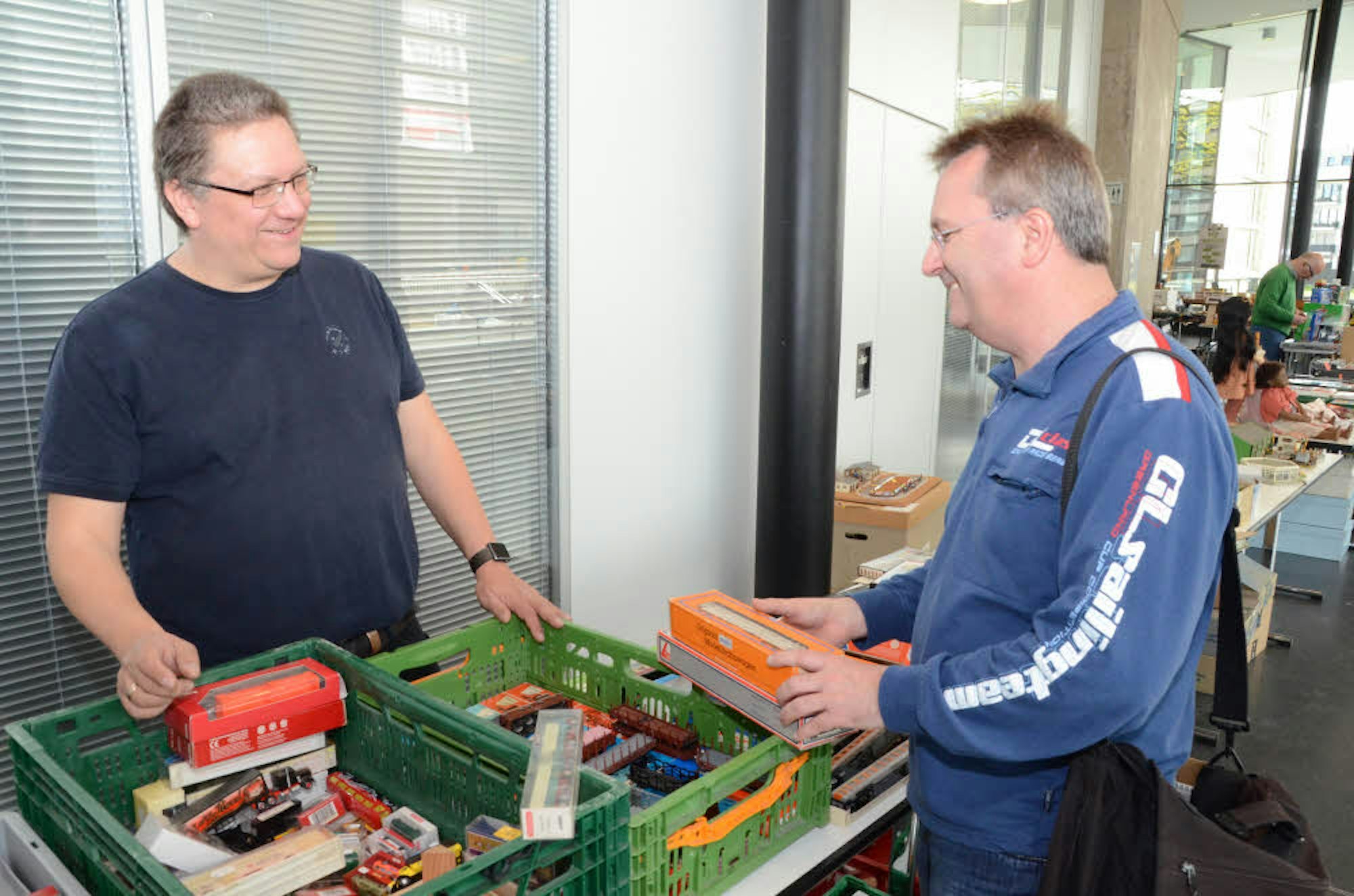 Zum Beispiel mit Erwin Meier aus Troisdorf, der die große Sammlung seines verstorbenen Vaters auflöst. „Der hat über 50 Jahre gesammelt“, zu den besten Zeiten besaß er rund 1000 Loks und 3000 Waggons sowie eine 35 Quadratmeter große Anlage.