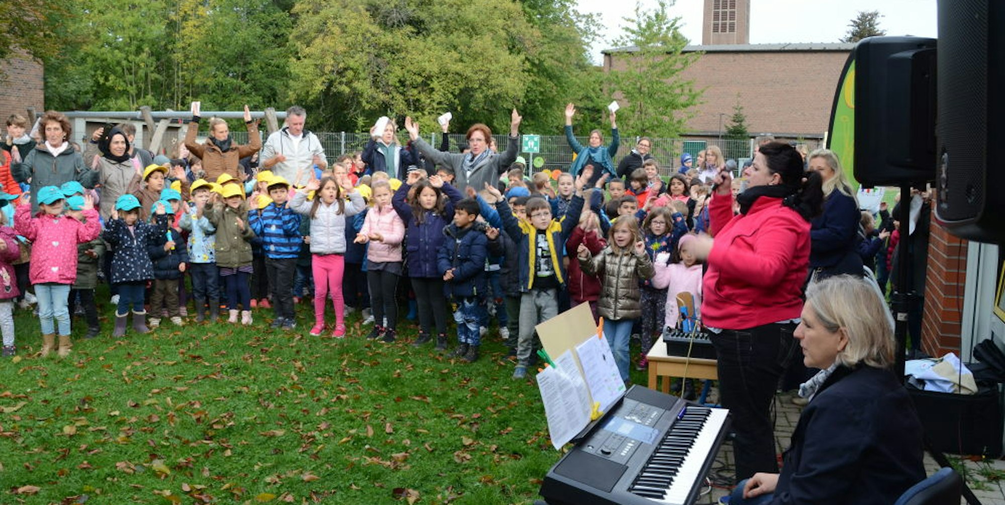 Troisdorf – „Hütte singt“ lautet das Motto seit dem Jahr 2008; so lange schon treffen sich einmal im Jahr Kinder aus den Kindertagesstätten des Stadtteils und aus der Grundschule zum gemeinsamen Singen. Im Stadtteilpark waren sie mit dieser Aktion schon zu Gast, sie trällerten auf dem Windgassenplatz oder auch in der Kindertagesstätte Curieweg. Zum Jubiläum des Bonhoeffer-Hauses der evangelischen Kirche waren die singenden Pänz auch dort zu Gast – stolze 350 Beteiligte wurden damals gezählt.