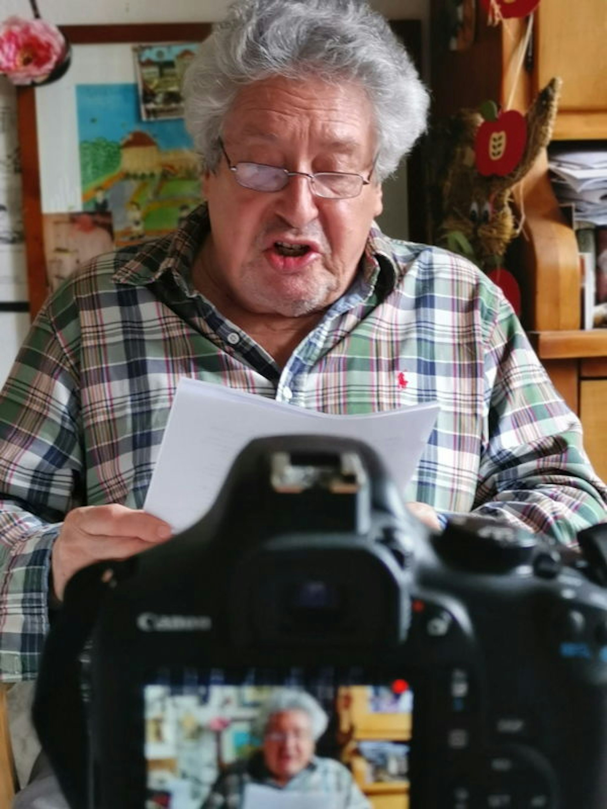 Prominente Darsteller wie Volker Brandt lesen vor der Kamera.