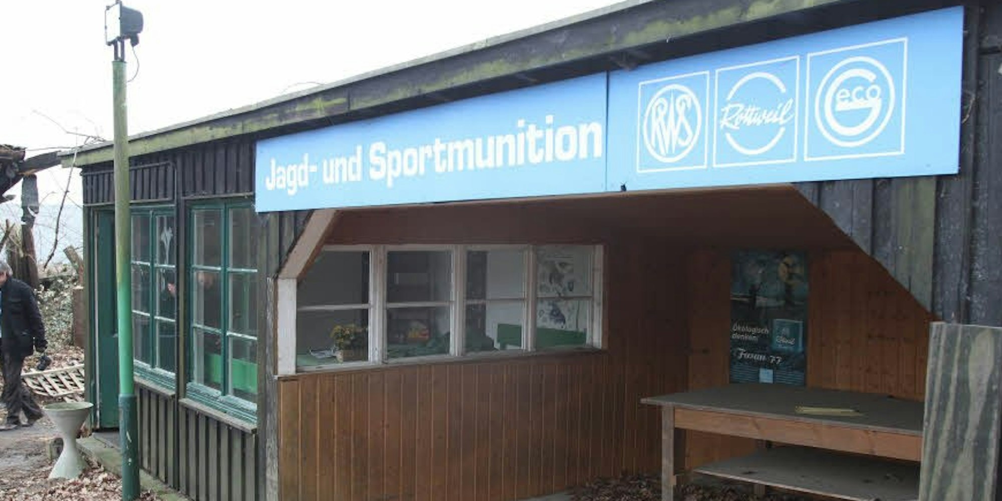 Troisdorf – Es sind nur noch ein paar Werbeplakate und Utensilien in den baufälligen Baracken, die an alte Zeiten erinnern: „Null Bock auf zweite Wahl“ ist über dem Foto eines fliehenden Rehbocks zu lesen, das für einen Munitionshersteller wirbt ist.