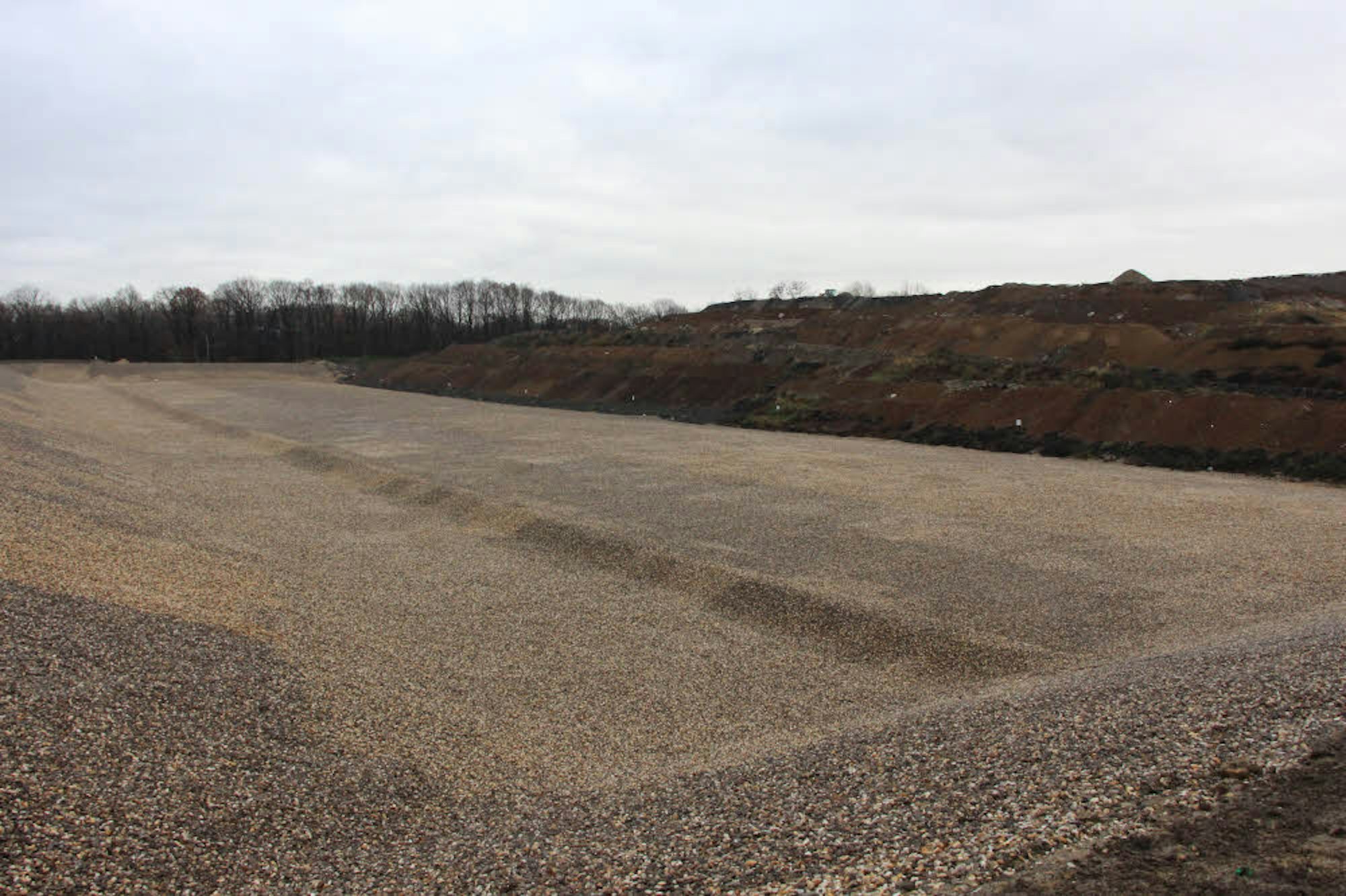 Links ist der Boden für die spätere Oberflächenabdichtung gelagert, rechts befindet sich die Deponie 5.2.