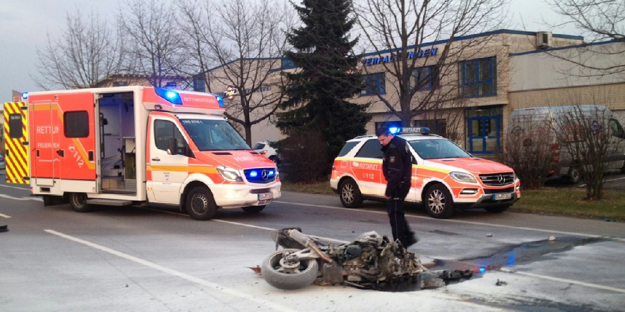 Die beiden auf dem Zweirad dagegen stürzten und blieben auf Grünstreifen sowie Fahrbahn liegen. Das zerstörte Bike schlidderte noch einige Meter weiter und ging in Flammen auf. Der Busfahrer berichtete, dass er bemerkt habe, wie sich sein Transporter ohne sein Zutun bewegte. Plötzlich bemerkte er die Flammen und konnte sie überhaupt nicht zuordnen, er hatte kurz die Orientierung verloren. Erst eilte er zu dem brennenden Metallhaufen. Doch als er sah, dass dort niemand lag, rannte er zum Heck seines Wagens.