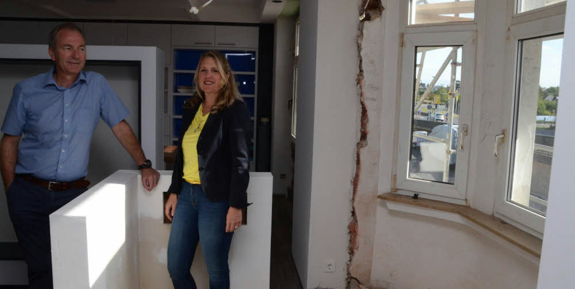 Die schöne Aussicht hat man nur noch aus dem Dachgeschoss, Tausende Autos rollen hier täglich über die Rampen zur Autobahnbrücke. Die Lage sei es gewesen, begründen die beiden heute ihre Kaufentscheidung; Erreichbarkeit und Wahrnehmung überzeugten. „In einem Industriegebiet verschwindet man einfach“, sagt Eigentümerin Sabine Dobelke.