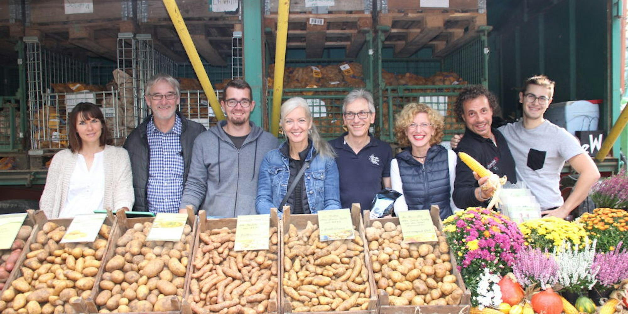 Im Publikum stand auch eine Gruppe, die sich – passend zum Jubiläum der Stadt – in Originalkleider aus den 60er-Jahren geworfen hatte und vorbei an den Ständen wandelte, zu Karnevalsmusik schunkelte oder bei „Running 5“ mitrockte. Es waren Mitglieder vom Männerballett „Los Möhnos“ mit ihren Partnerinnen. Sie hatten sich bei der CDU-Kleiderstube Hennef, der Nachbarschaftshilfe und aus dem eigenen Kleiderschrank eingedeckt. Tatsächlich waren sie ein ziemlich authentischer Augenschmaus, von den Besuchern, die sich vorbei schoben an den Erntegaben, mit Freuden, aber auch Staunen beäugt.