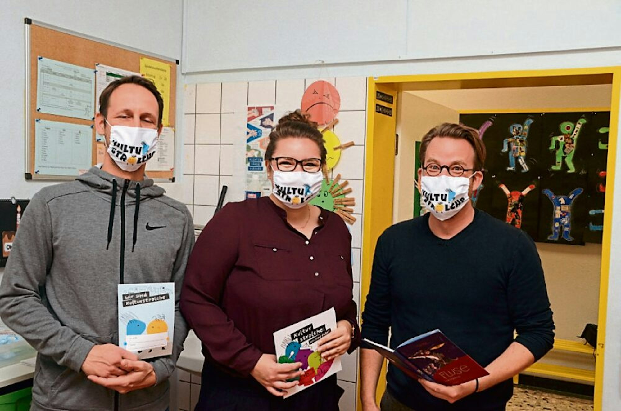 In der Grundschule Eschmar waren (von links) Frank Barion (Stadtbibliothek Troisdorf), Stefanie Rauscher (Kulturstrolche/Kennen Lernen Umwelt Troisdorf) und der Autor Simak Büchel zu Gast.
