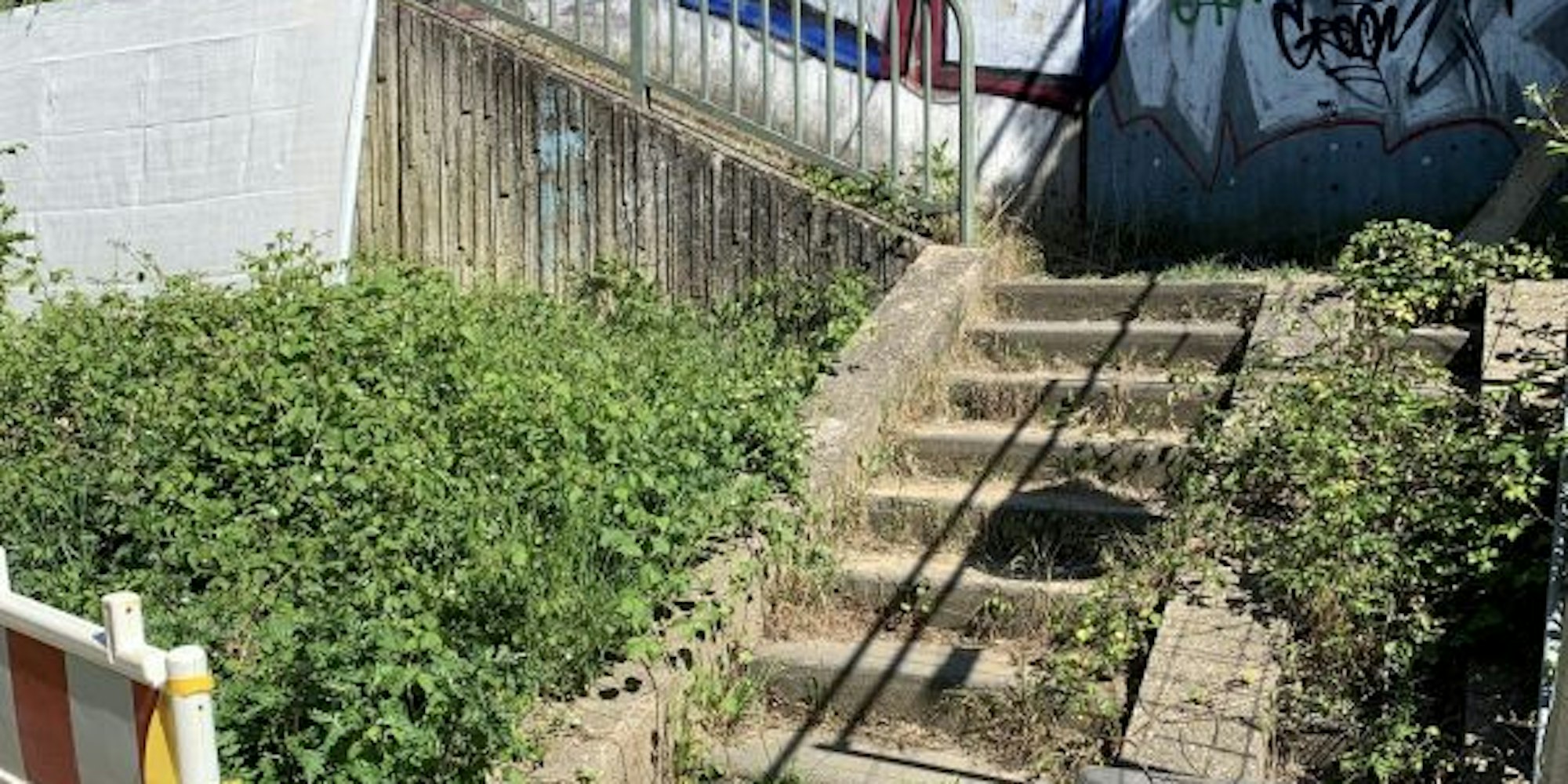 Verwüstet zeigt sich die Treppe auf Troisdorfer Seite.