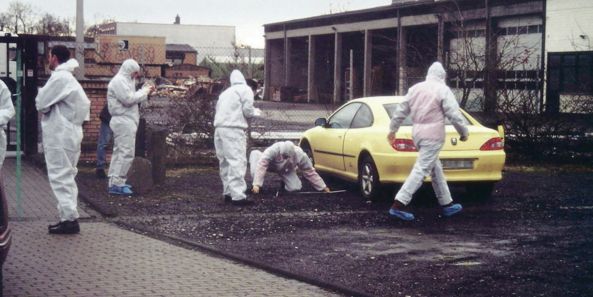 Beamte der Spurensicherung untersuchten 2001 das Fahrzeug, in dem der Tote aufgefunden worden war.