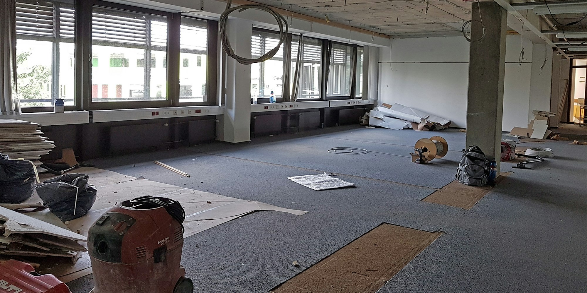 - Während der Umbaumaßnahmen können einige Büros nicht genutzt werden.