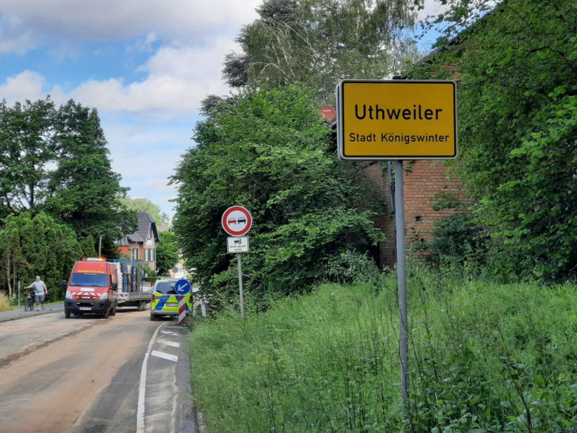 So blieb der Stadt Königswinter nur, die Landesstraße zur unmittelbaren Gefahrenabwehr mit Flatterband abzusperren. Ein Streifenwagen der Polizei leitete die Autofahrer auf Ausweichstraßen um. Reinigungs- oder weitere Sicherungsmaßnahmen seien Sache des Landesbetriebs, der erst am Sonntag erreicht werden konnte, hieß es.