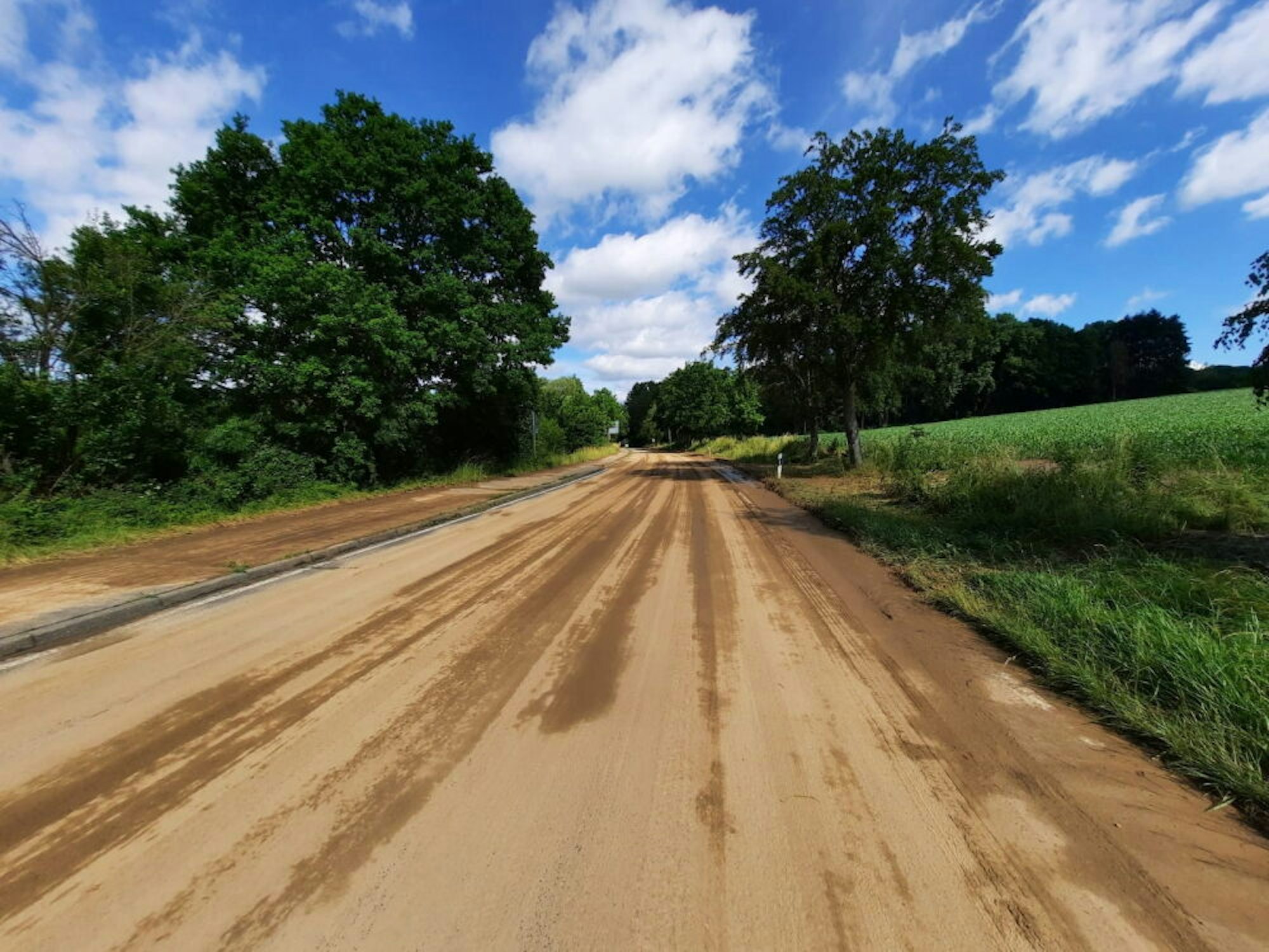 Das eingesetzte Fahrzeug ist aber für die Beseitigung von Ölspuren gedacht, angesichts des Schlamms auf der Fahrbahn, der trocken hart wie Beton wird, äußerten Anwesende Zweifel, ob diese Maßnahme ausreiche. Die Dauer der Sperrung ist derzeit noch offen.