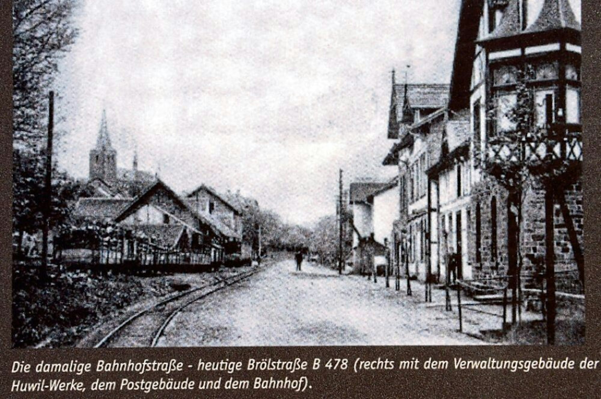 In Ruppichteroth befand sich gegenüber der Huwil-Verwaltung der Güterbahnhof. Heute erinnert dort noch ein Stück Gleis an das Brölbähnchen.