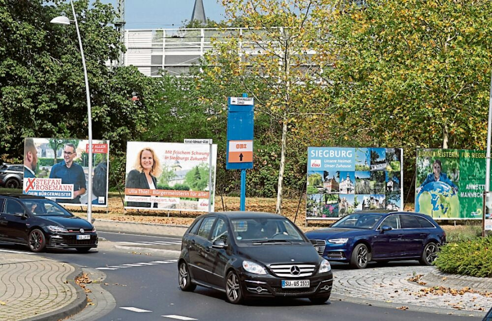 In Siegburg gibt es keine Regelung zur Menge der Plakate, allerdings regelt die Wahlwerbesatzung, wo sie aufgehängt werden dürfen und wo nicht. Zum Beispiel sind Kreisverkehre, Verkehrszeichen und Ampelmasten tabu. Laternen sind erlaubt, antike Laternen dürfen aber nur umstellt werden.
