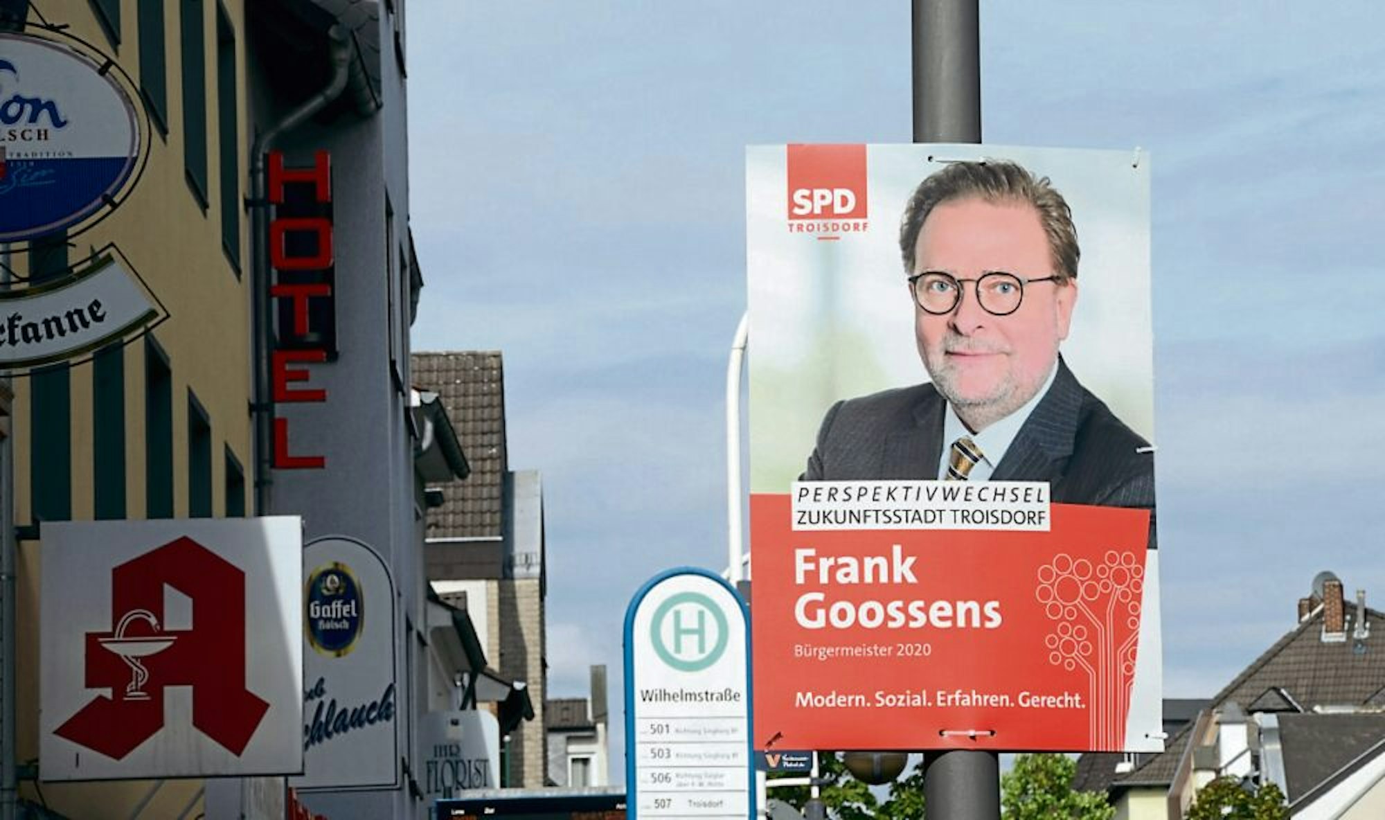 „Großzügig bemessen“ hat laut Plugge das Gericht die Zahl von Plakaten genannt, die in Troisdorf erlaubt sind: 180 für die großen Parteien, 90 für die mittleren und 45 für kleine Parteien oder Wählergemeinschaften. Im Kern gehe es um die Definition von Plakat im Unterschied zu Standort. „Wir verwenden alle sogenannte Doppelplakate“, erklärte der SPD-Vorsitzende und Bürgermeisterkandidat Frank Goossens. „Nach unserer Interpretation ist das ein Plakat.“