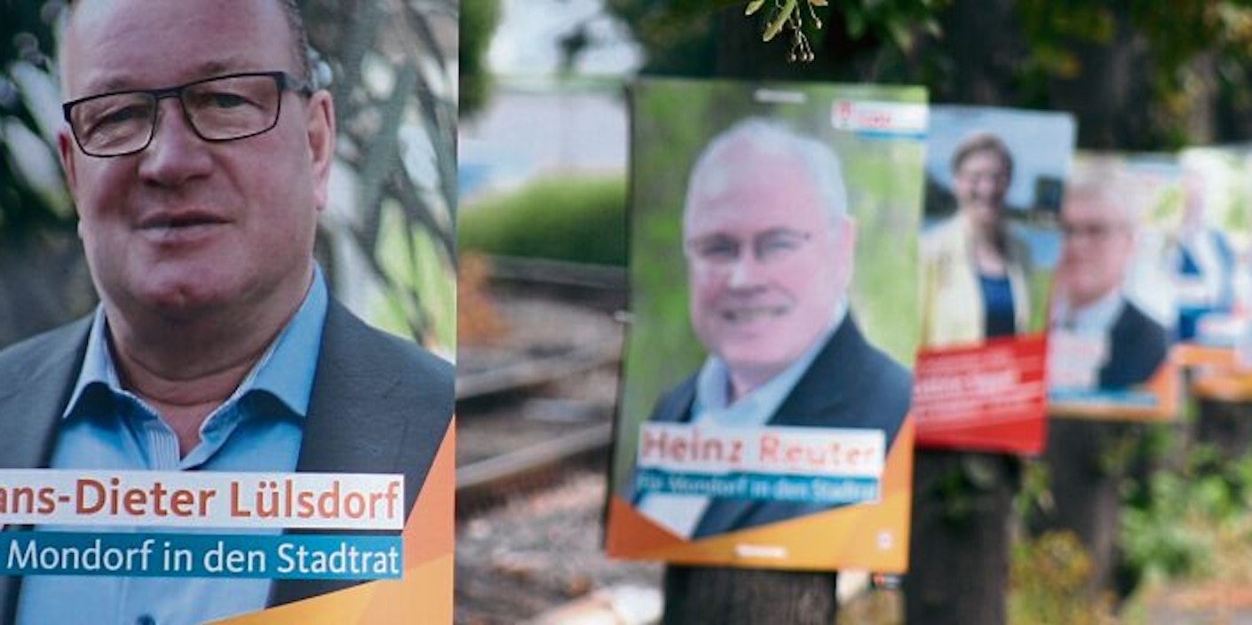 „Es gibt keine Obergrenze“, erklärt der Niederkasseler Rathaussprecher Markus Thüren. Allerdings werde nicht jede Fläche genehmigt. Sechs Wochen vor der Wahl darf plakatiert werden; bei 19 Wahlbezirken und vier anstehenden Wahlen komme da natürlich einiges zusammen. Wie viel Werbung eine Partei mache, hänge zum Teil ja auch von der Größe der Teams an Freiwilligen ab. „Man hat in Niederkassel immer auf die Vernunft der Parteien gesetzt.“