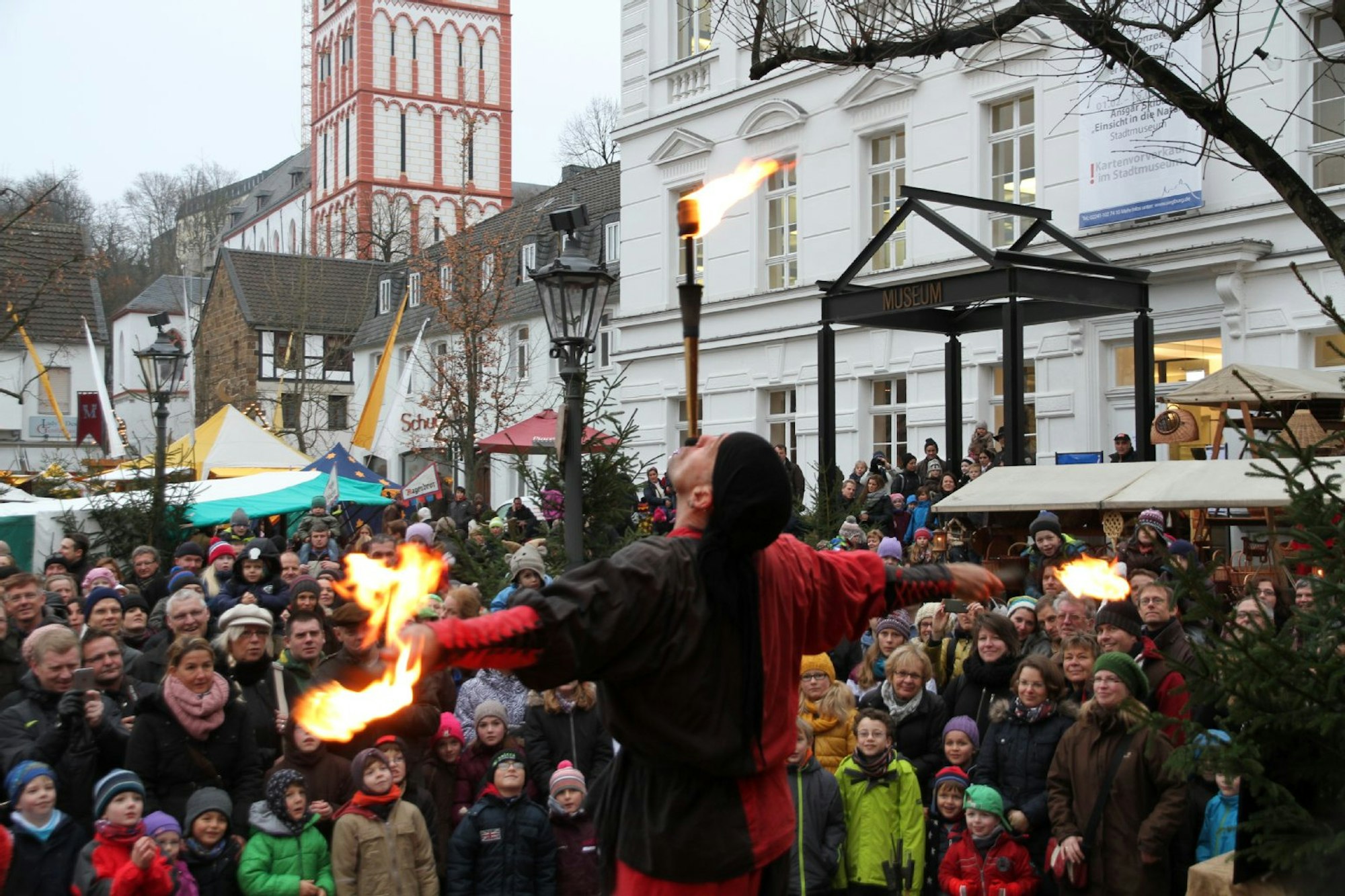 Mittelaltermarkt, 24. November bis 23. Dezember, täglich von 11 bis 21 Uhr, freitags und samstags bis 22 Uhr. (Lesen Sie hier mehr zum Mittelaltermarkt in Siegburg)