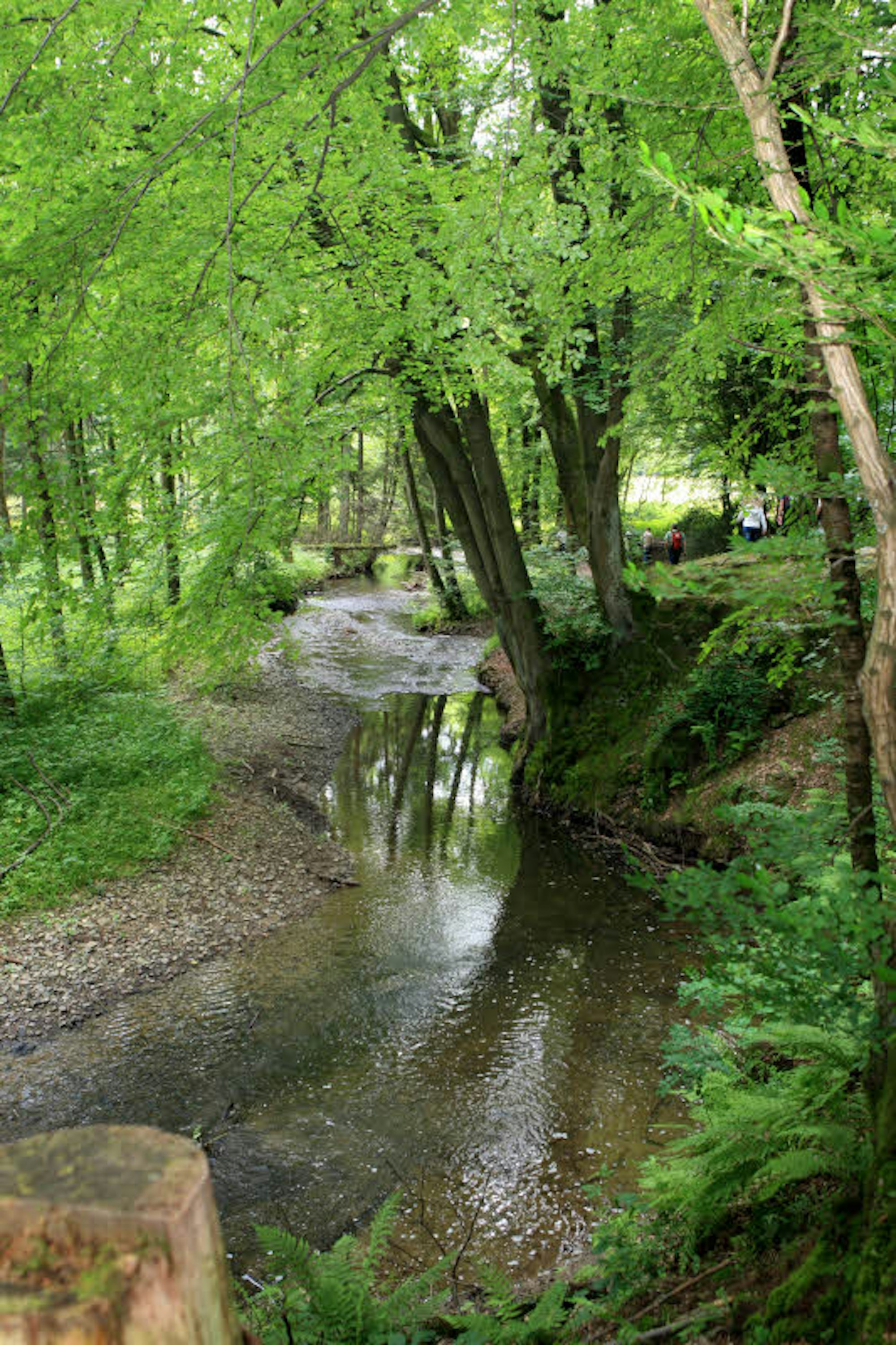 Nachdem wir es notiert haben, wandern wir auf dem Eifgenbachweg ins Tal hinein, überqueren bald das gurgelnde Gewässer, das am Wermelskirchener Rattenberg entspringt und bei Altenberg in die Dhünn mündet.