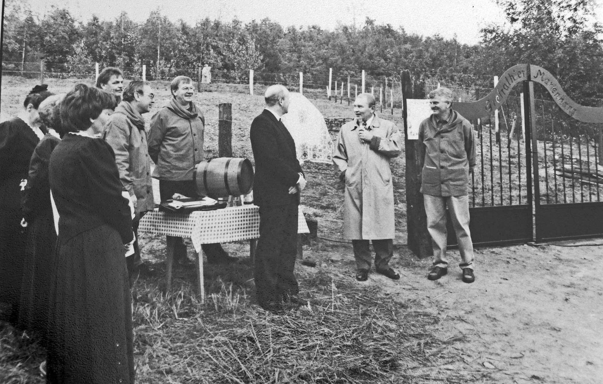 Im Juli Juli 1995 wurde der Grefrather Weinberg eingeweiht. Auch Bürgermeister Jürgen Schaufuß (2.v.r.) war gekommen.
