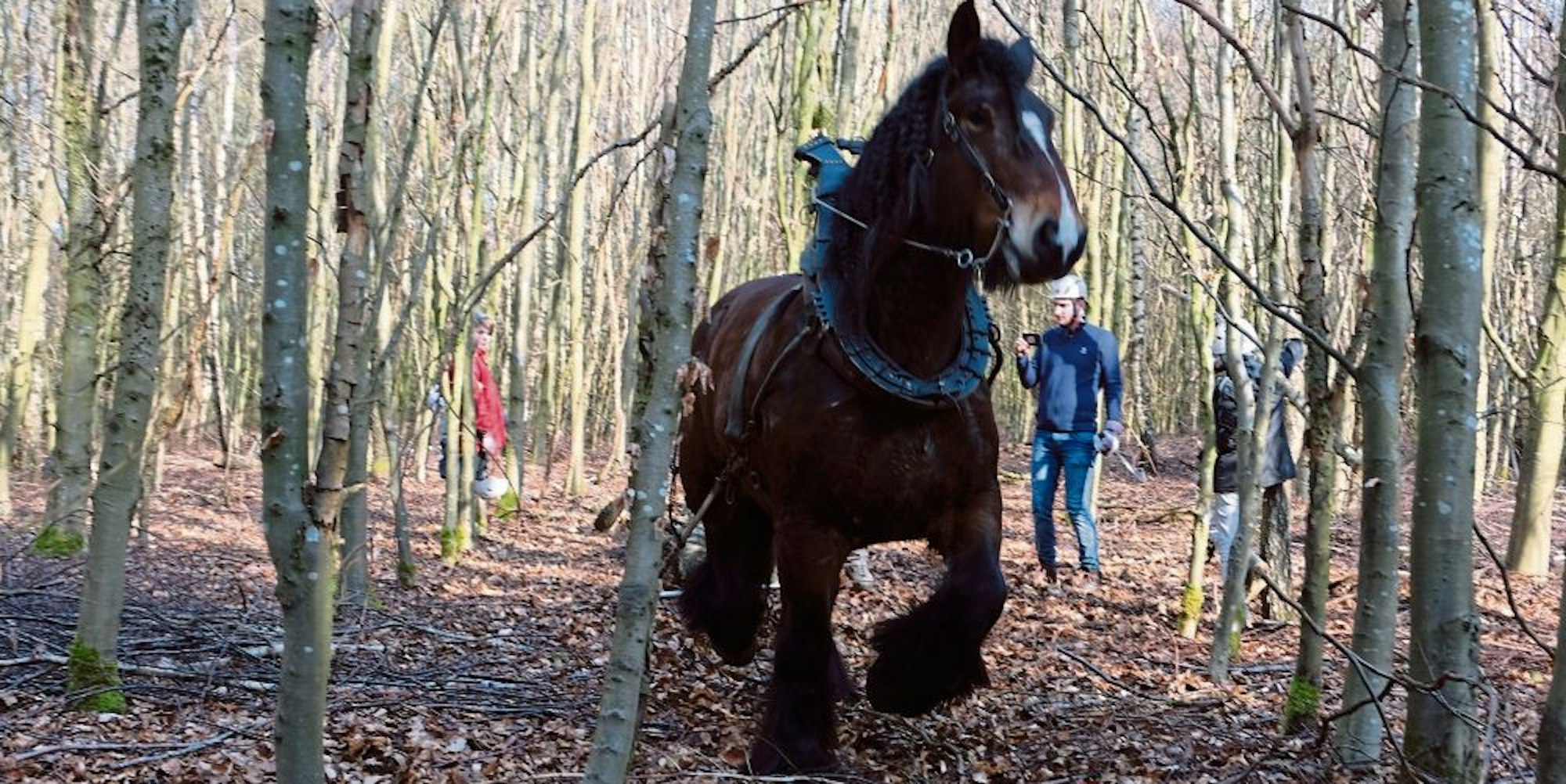 „Vertrauen ist die Grundvoraussetzung für die Zusammenarbeit von Mensch und Pferd“, hat er vorher erklärt. Lucky vertraut Zöll, hört auf Zurufe wie „Hött“ für rechts, „Ha“ für links, „Oh“ für „Steh!“ oder „Jö“ für vorwärts. Seelenruhig führt das Pferd die Kommandos aus, auch wenn ihm mal ein Ast um die Ohren peitscht oder ein Stück Holz unter den mächtigen Hufen splittert.