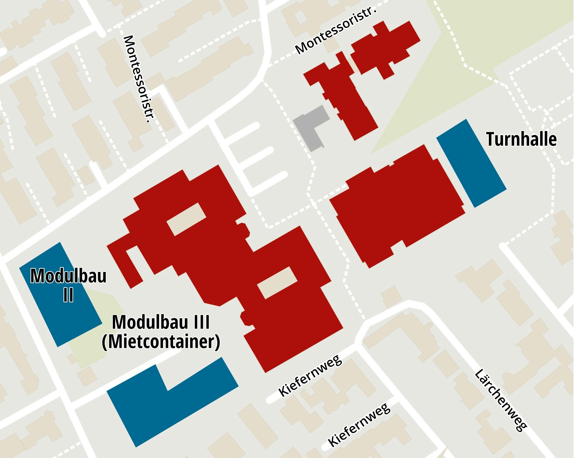 Die Turnhalle soll die bereits zwei bestehenden Turnhallen ergänzen und soll teilweise auf dem Gelände des Außensportbereichs entstehen. Dieser sei für die Schule allerdings höchstens sechs Monate im Jahr nutzbar – und das auch nur bei trockenem Wetter und bis 16 Uhr, weil sonst die Besucher und Besucherinnen des benachbarten Friedhofes gestört würden, erläutert Sieben.