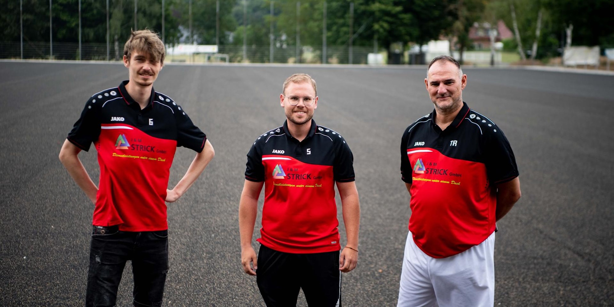 Freuen sich auf den Platz: Niklas Feithen (Geschäftsführer, v.l.), Daniel Ganz (2. Vorsitzender), Trainer Marcus Albrecht.