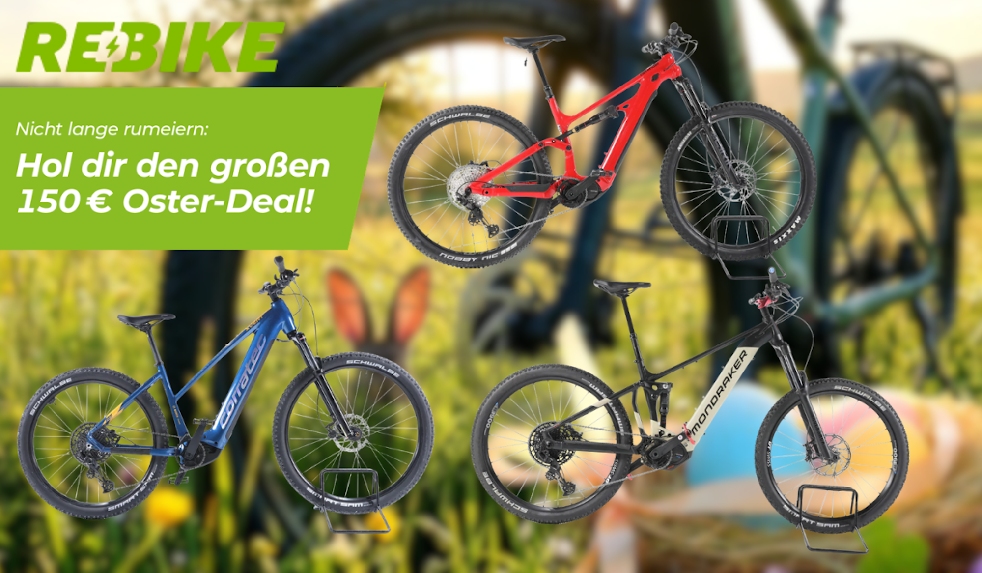 REBIKE Oster-SpecialPreisnachlass von 150 Euro auf E-Bikes namhafter Hersteller