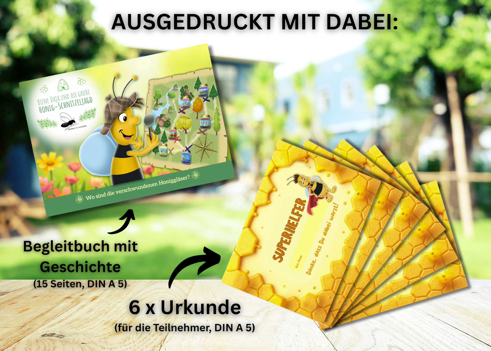 - 6 hochwertige Urkunden für die kleinen Honigjäger:innen